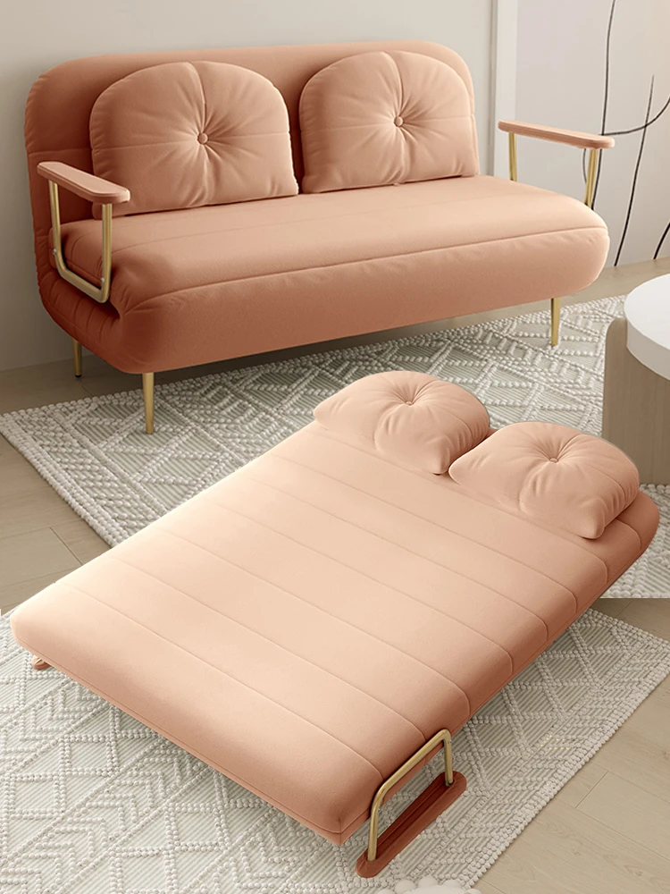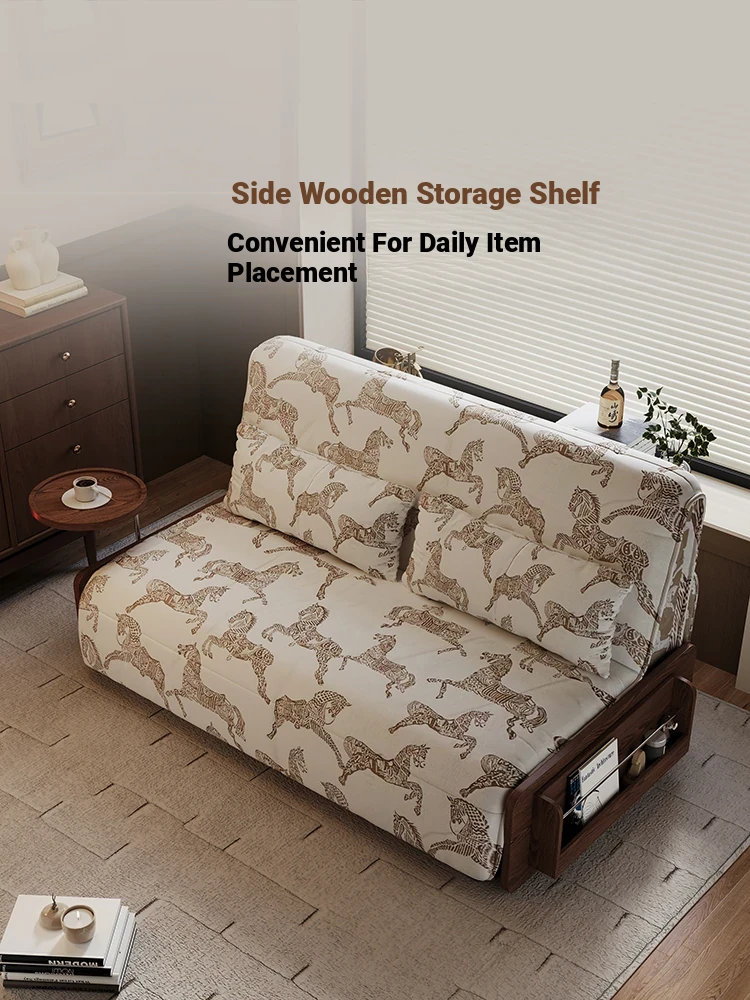 Vintage Electric Sofa Bed - Solid Wood Folding Multi-Functional Design for Small Apartments, Retro Style, Expandable for Living Room - New 2025 Model
