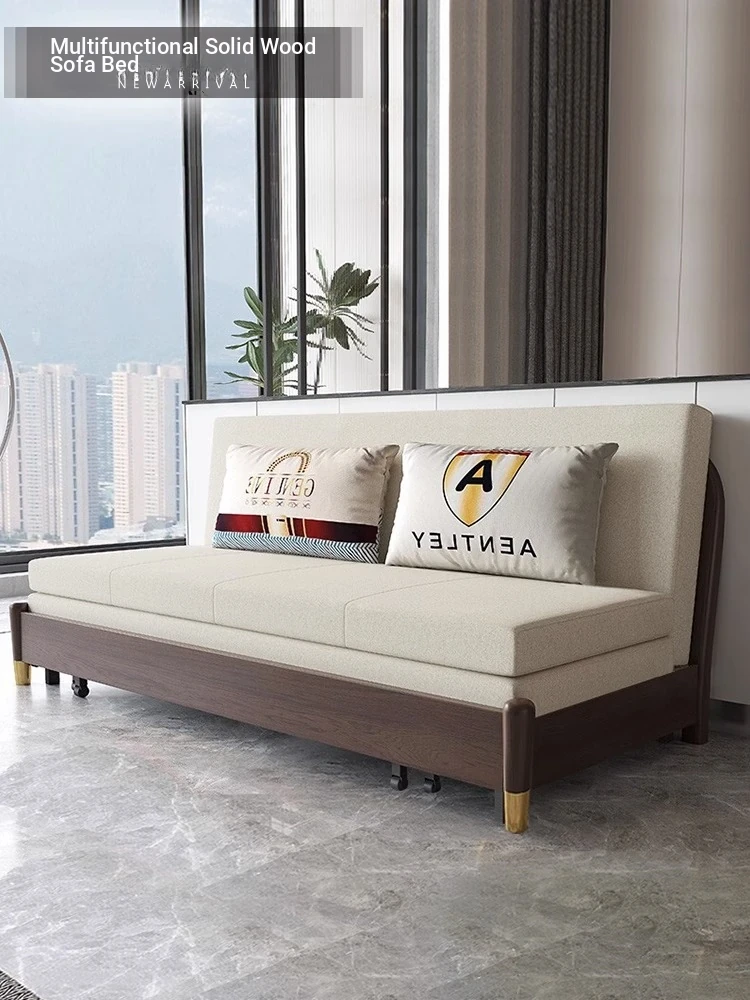 【Free Shipping in Hong Kong】Foldable Solid Wood Sofa Bed - Multi-Functional for Small Spaces, Perfect for Living Room, 1.5m to 1.8m Options Available