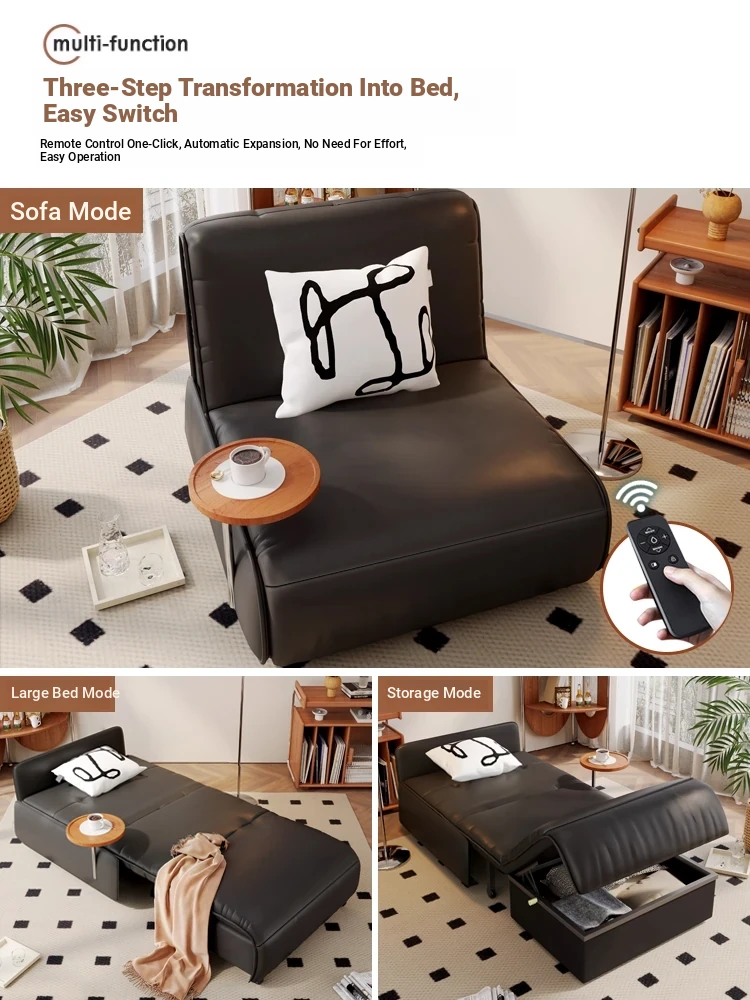 2025 New Trendy Smart Electric Folding Sofa Bed - Multifunctional Leather Sofa for Small Spaces, Fully Automatic, Perfect for Single Use