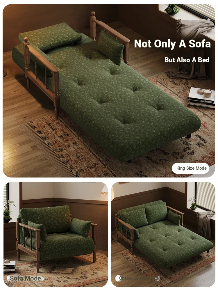 Vintage Solid Wood Foldable Sofa Bed - 2-in-1 Dual Use for Small Spaces, Perfect for Modern Living Rooms - 2025 New Arrival Multi-Functional Design