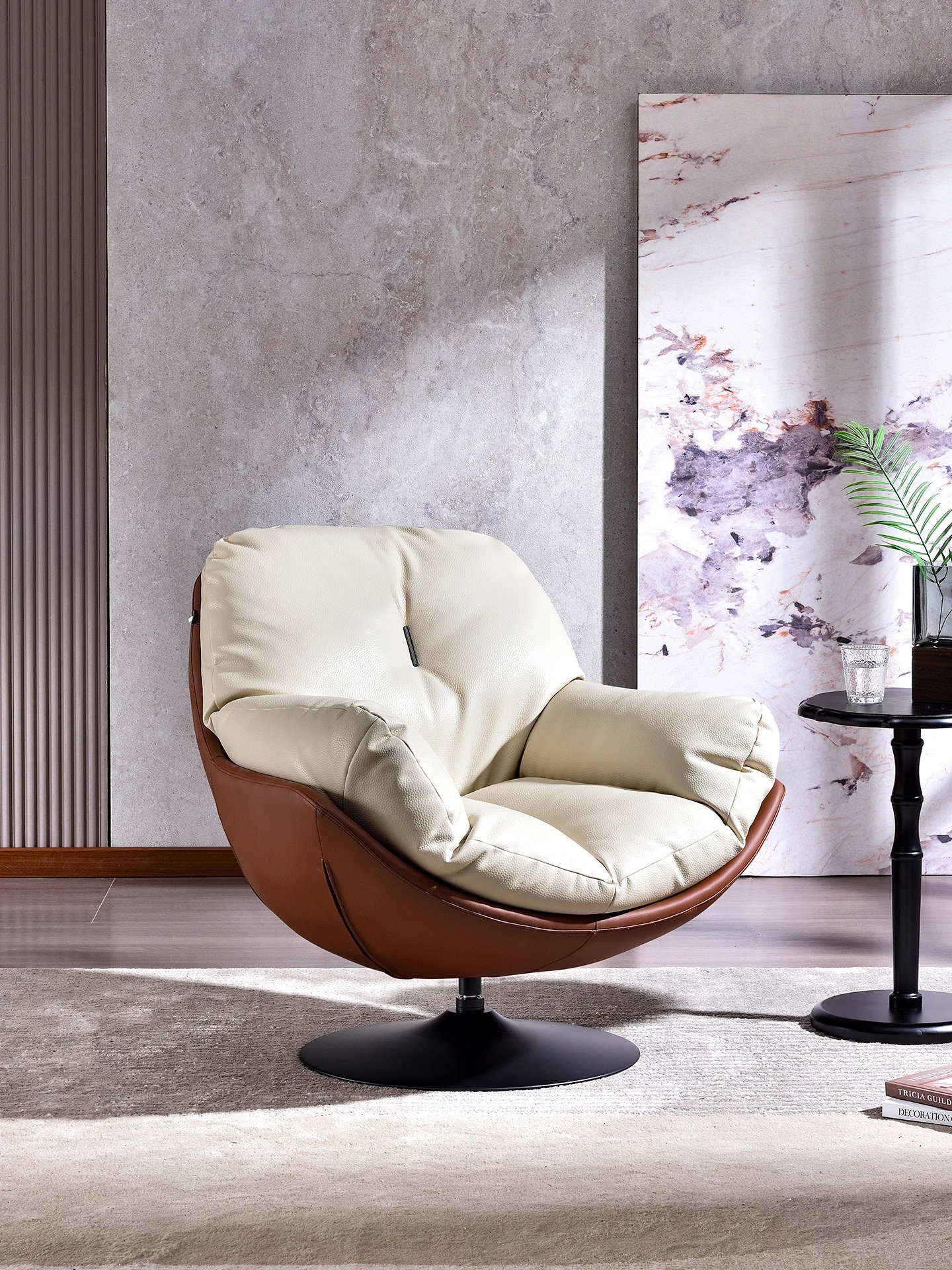 Modern Minimalist Single Sofa Chair - Designer Lounge Chair for Living Room, Comfortable Rotating Recliner for Home Use