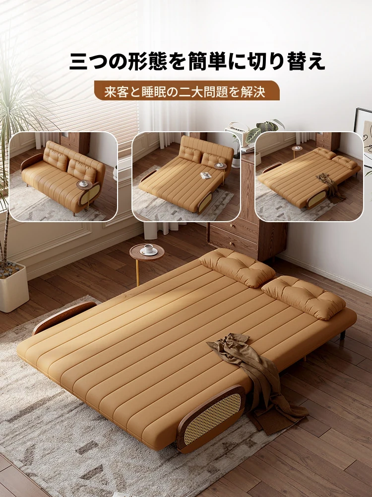 2025年新款!実木製ソファベッド、リアルレザー折りたたみ式、二つの機能を兼ね備えたコンパクトな小型リビング向けのダブルサイズ、多機能でレトロな新中式デザイン!快適な空間を演出します。