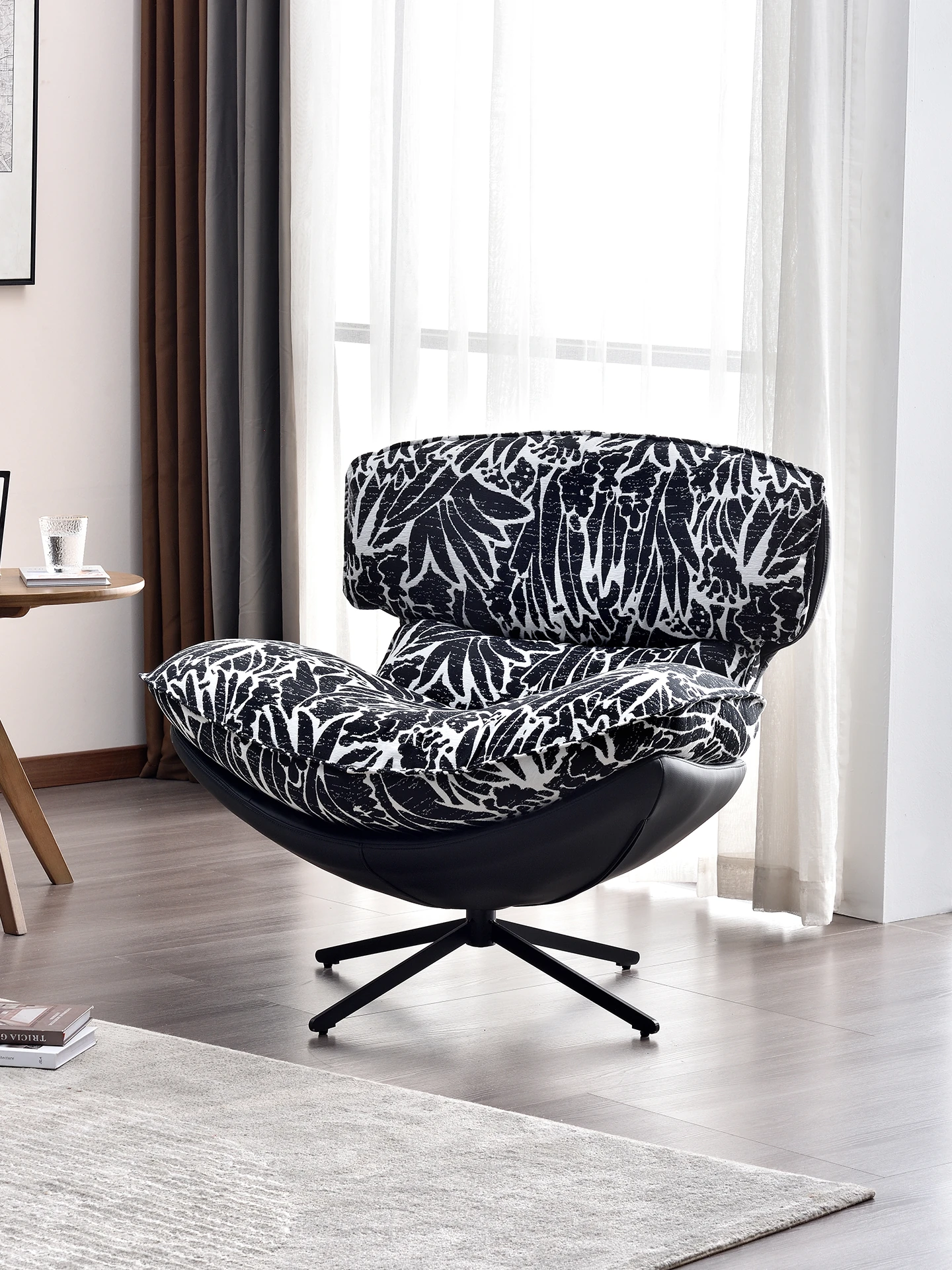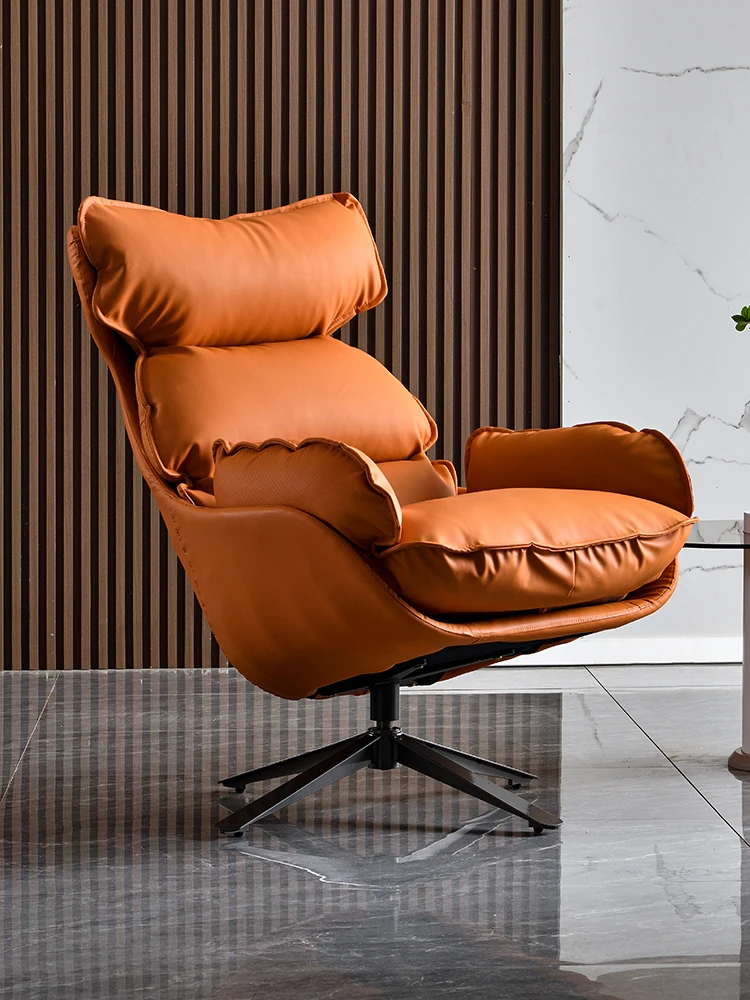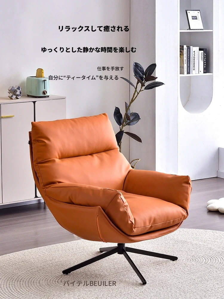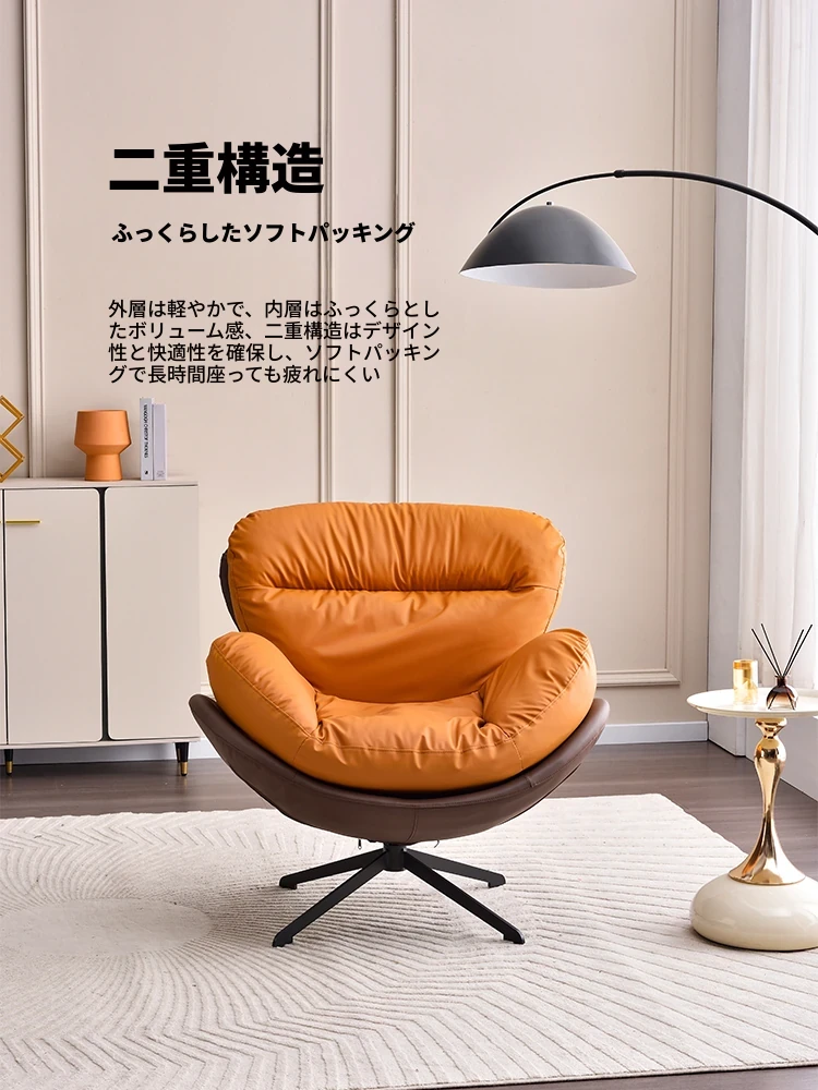 ラグジュアリーな回転式一人掛けソファチェア|リビングにぴったりの本革デザイン|リラックスできるレイジーチェア|小型スペースやバルコニーに最適!