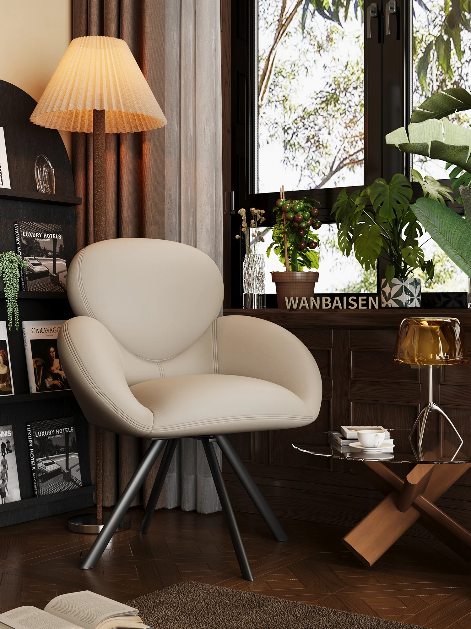 デザイン性抜群!軽やかなラグジュアリー感のある一人用回転ソファチェア。オフィスや書斎、リビング、バルコニーに最適なモダンシンプルスタイルのリラックスチェア。おしゃれな空間を演出します!
