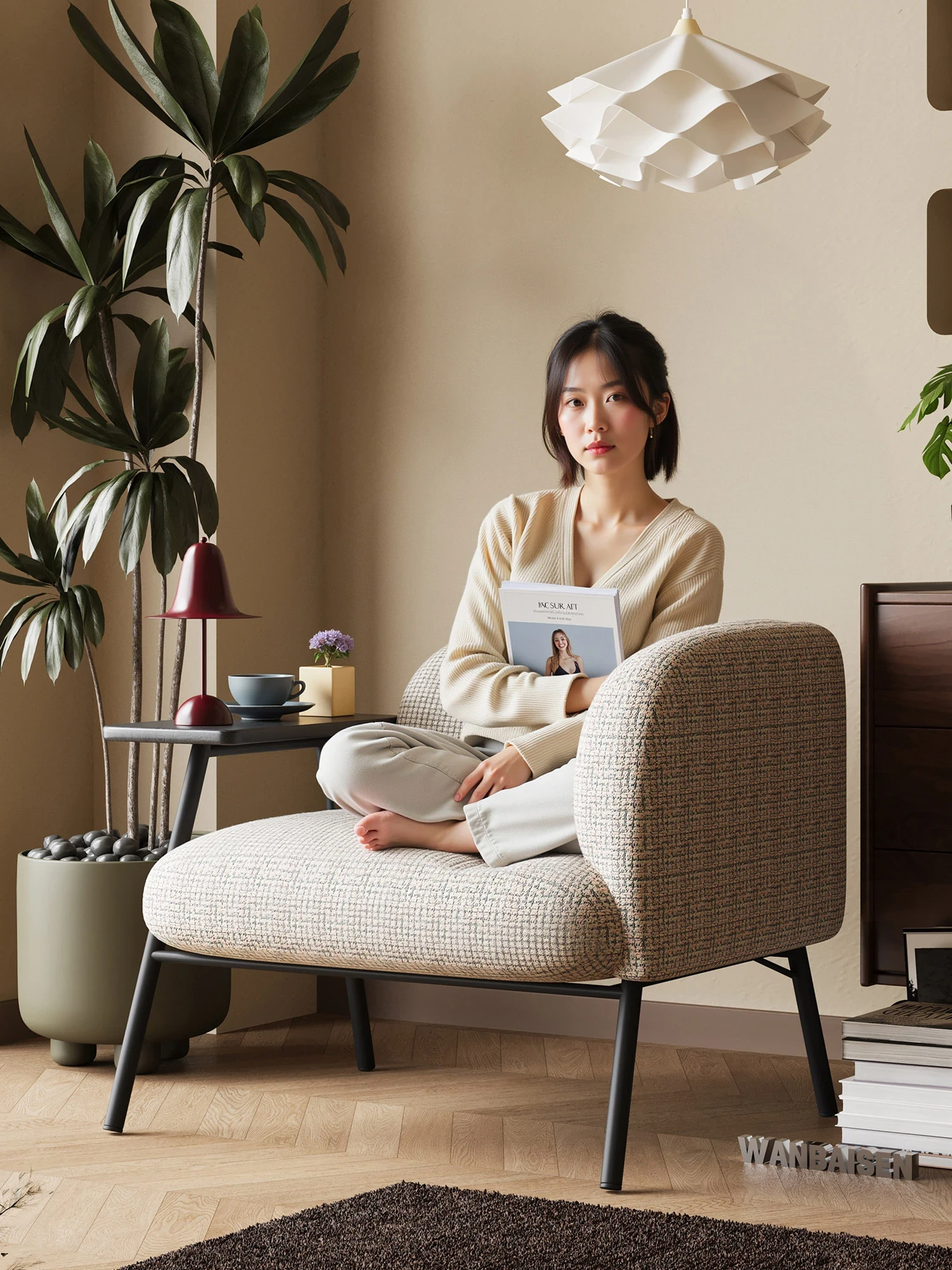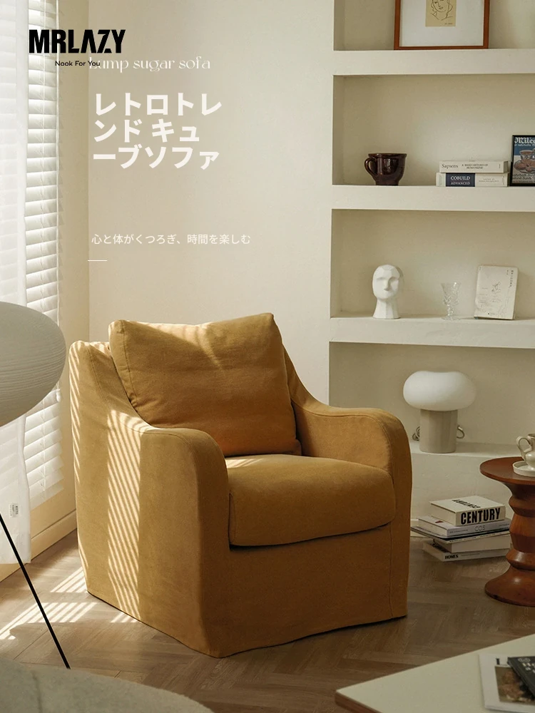MRLAZYのリラックスソファチェア - 洗えるデザイン、レトロでラグジュアリーな高いアームレスト、和の美しさを感じる一人用ファブリックソファ。心地よいくつろぎを提供します!