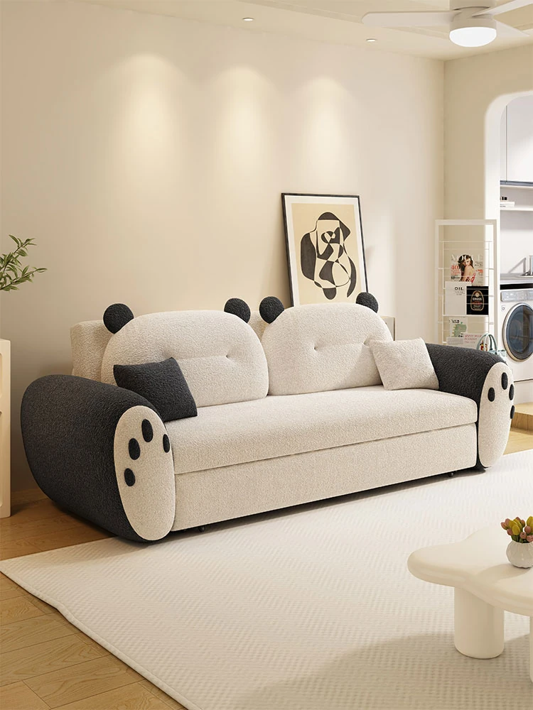 クリーム風パンダデザインの折りたたみソファベッド | 小型リビングやアパートに最適!1台2役の新しいファブリックソファで、スペースを有効活用しながらおしゃれなインテリアを楽しもう!