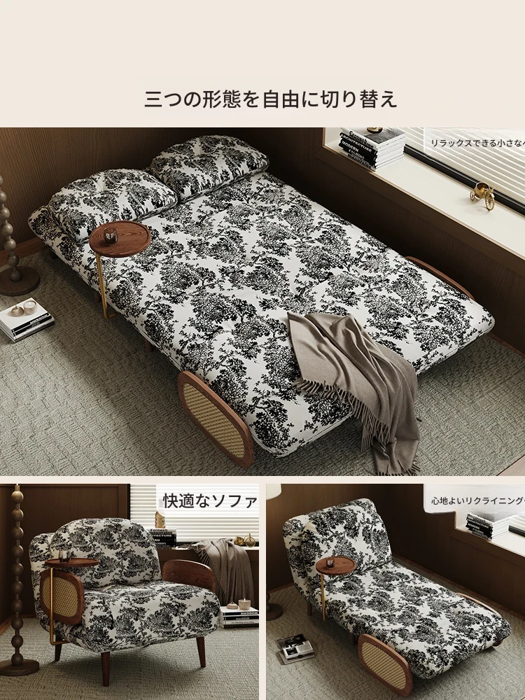 レトロ風シングルソファベッド|無垢材製|小型リビングに最適|多機能折りたたみ式|新中式デザイン|おしゃれなバルコニーにも◎