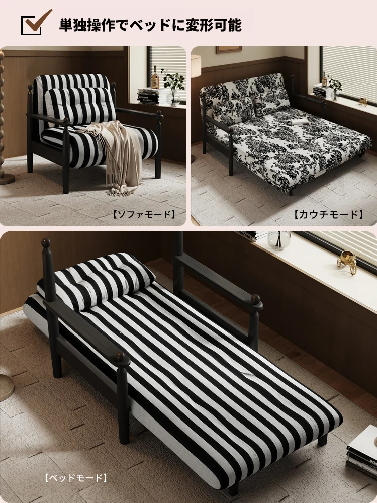 2025年新作!レトロデザインの折りたたみ式無垢材ソファベッド - 小型リビングにもぴったりな一人用・二人用多機能ベッド!快適さとスタイルを兼ね備えた魅力的なアイテム。