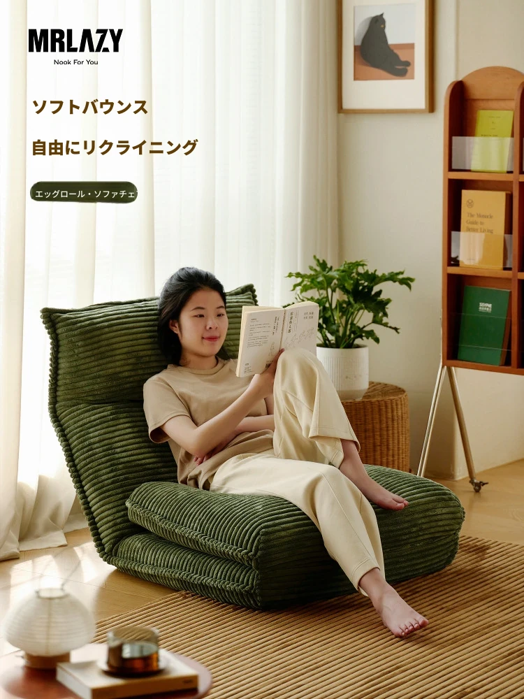 MRLAZY 折りたたみ式リクライニングソファチェア - アパートや小さなお部屋に最適!地面で使える2WAYデザイン、心地よいグリーンのエッグロールスタイルで、くつろぎのひとときを提供します。