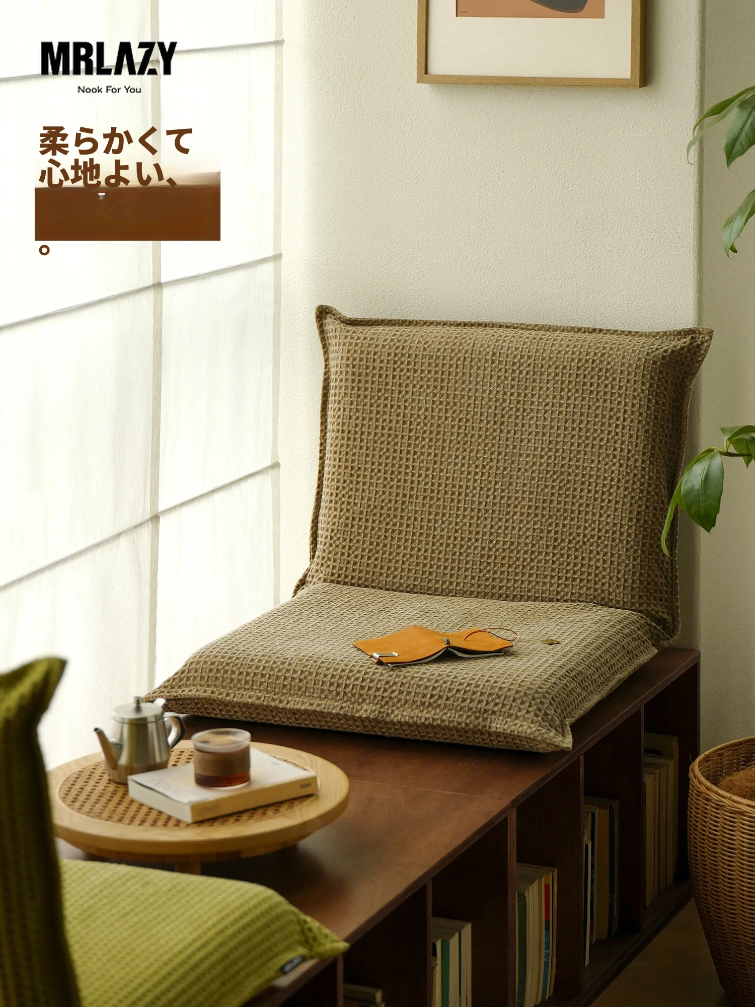 MRLAZY 折りたたみソファ - 小型住宅に最適な日本式タタミ座椅子。リラックスしたい時にぴったりの、心地よいクッション性を持つラウンジスタイルの座布団。窓際やベッド上で、贅沢なくつろぎ時間をお楽しみください!