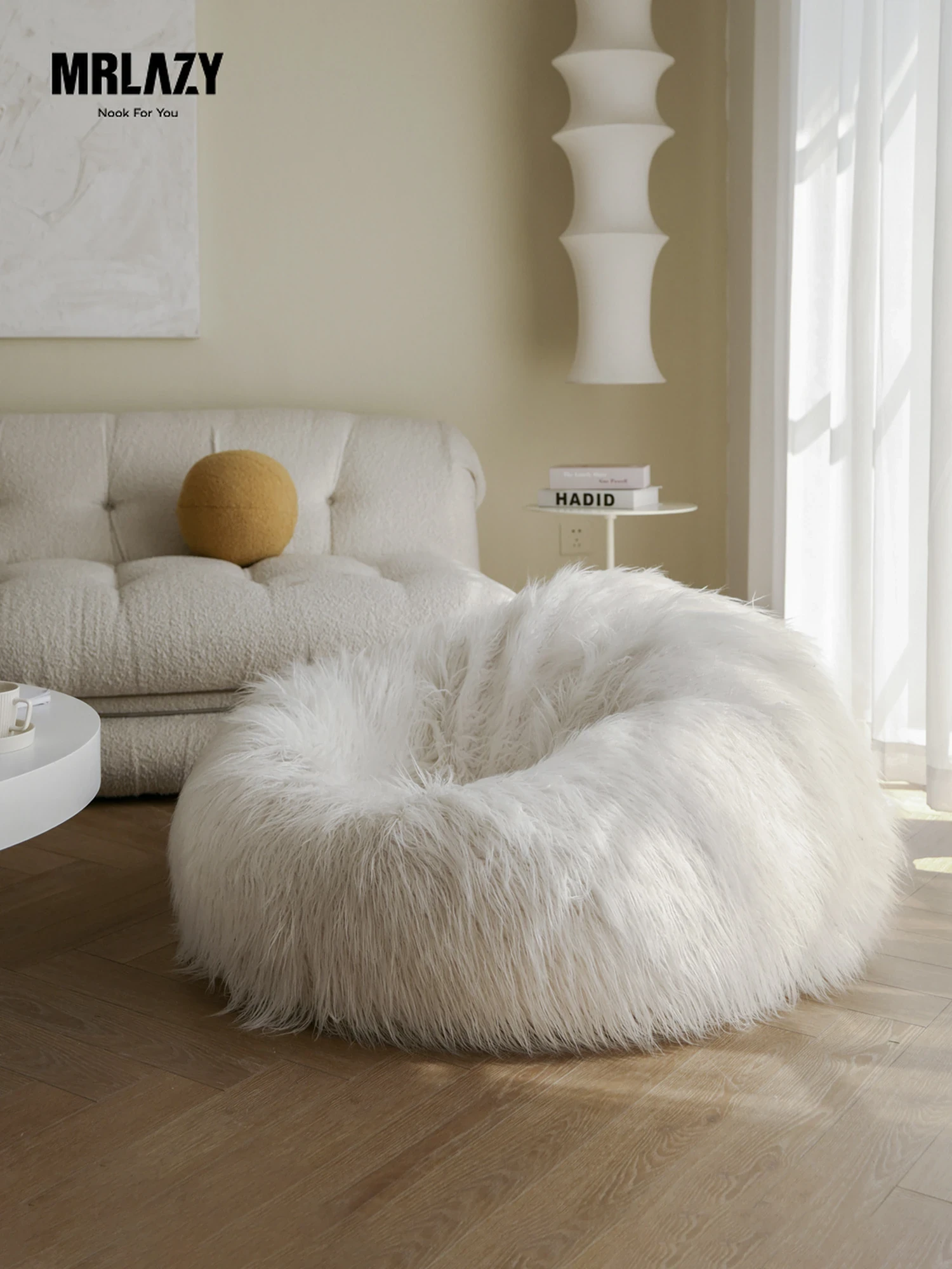 MRLAZYのウールビーンバッグソファ - 快適なプラッシュソファで、リラックスしたひとときを。寝室やリビングにぴったりなラグジュアリーな羊毛製のラウンジチェア。あなたのくつろぎ空間を演出します!