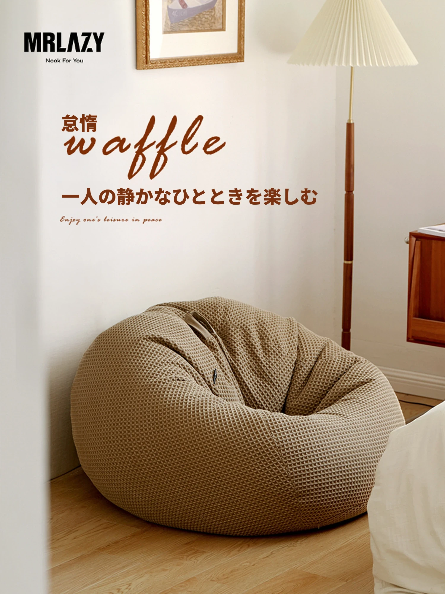 MRLAZYワッフルビーンバッグソファ|リラックスできる一人用|バルコニーや小型住宅に最適|寝転びやすい休憩用チェア【快適さとスタイルを両立】