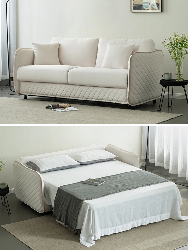 【香港送料無料】多機能ソファベッド・折りたたみ式・座る・寝る両方に対応!モダンなクリーム風・テクスチャーフリース素材で、狭い部屋にもぴったりのスタイリッシュな選択!