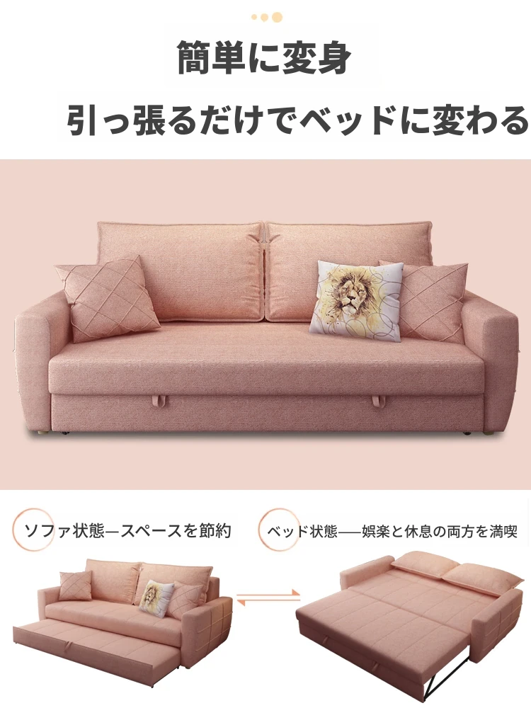 北欧スタイルの多機能ソファベッド!小型スペースに最適なトレンディなピンクのデザイン。軽やかなラグジュアリー感で、折りたたみ可能なダブルベッドとしても使用可能。おしゃれで快適なリビング空間を手に入れよう!