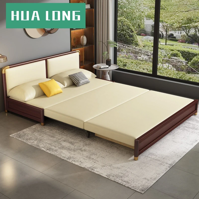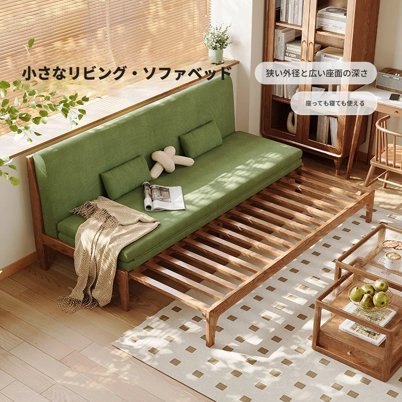 高品質の無垢材使用!折りたたみ式ソファベッド - 座っても寝ても快適!小型住宅に最適な多機能引き出し式ダブルベッド。限られたスペースでも贅沢な時間をお楽しみください!