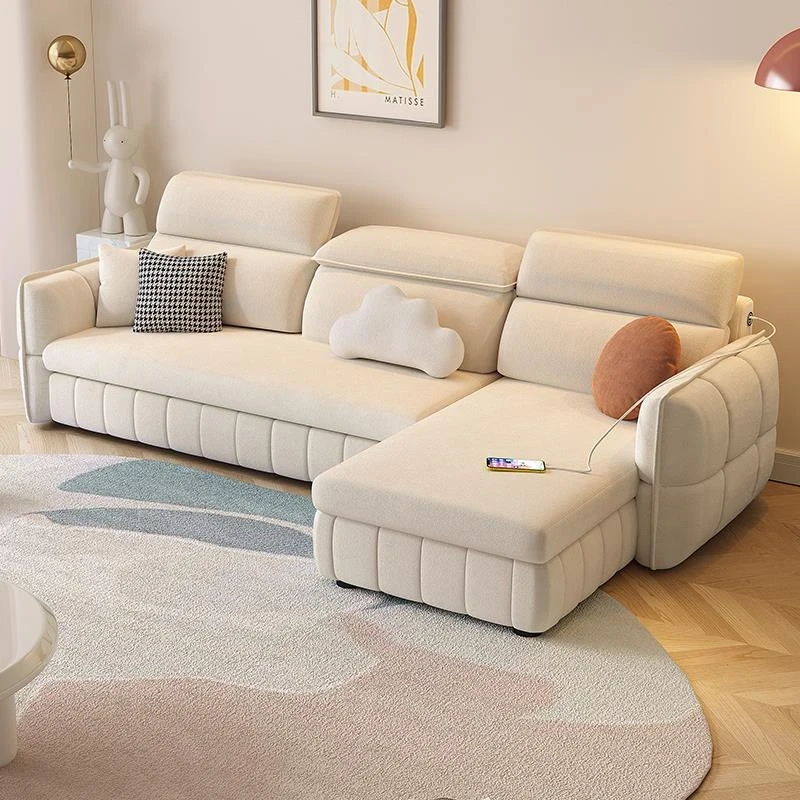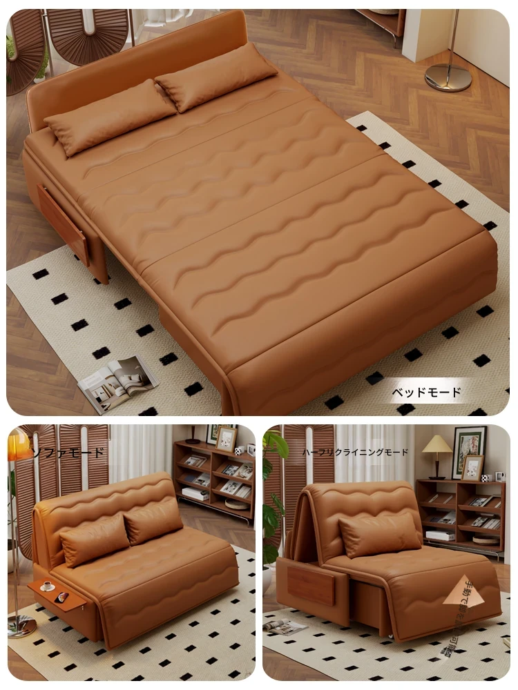 電動レザーソファベッド 多機能 ダブルサイズ 小型リビング向け 高級スマート折りたたみベッド 実木製の伸縮式デザインで、快適な睡眠空間を提供します!