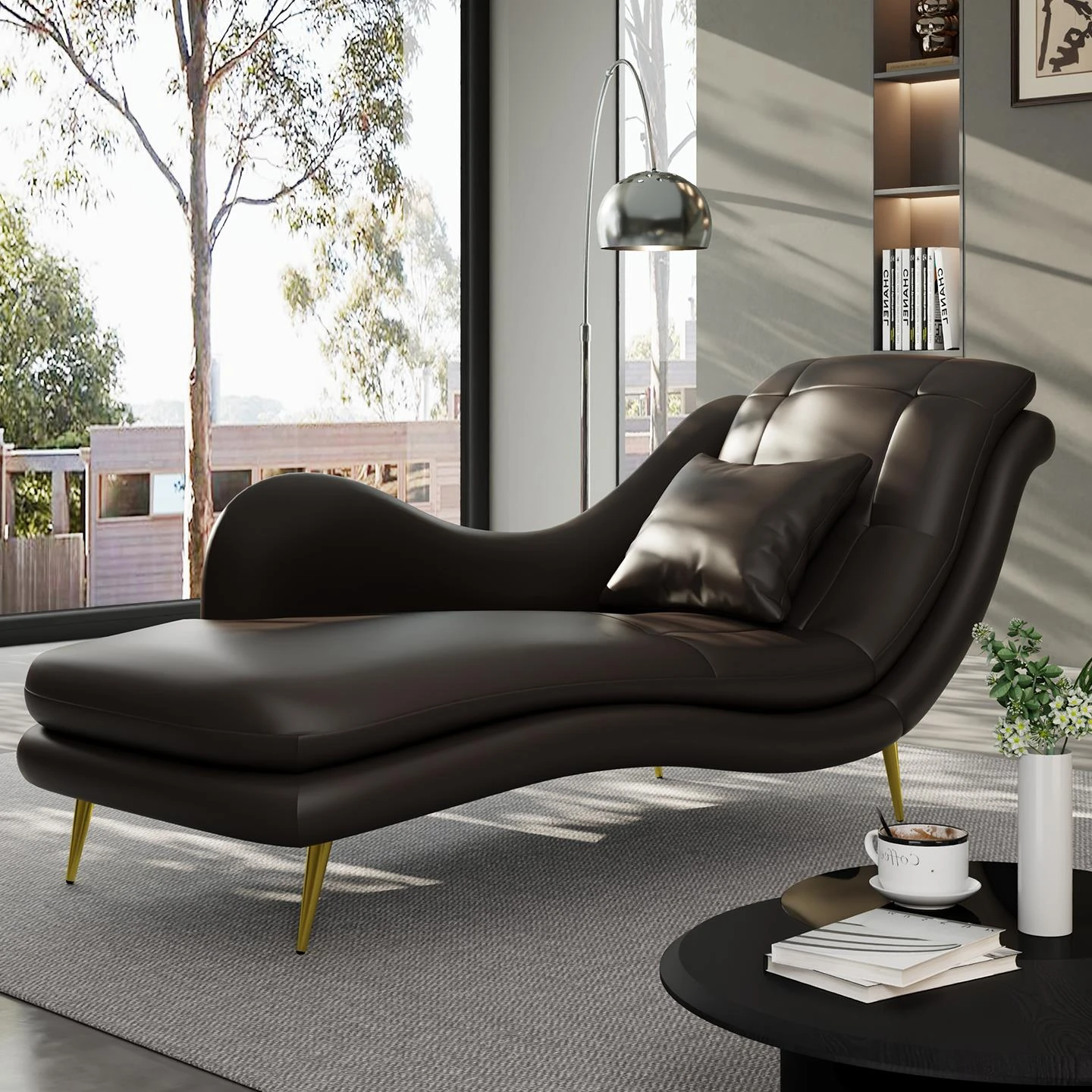 Luxury Faux Leather Chaise Lounge Chair - Modern Minimalist American Style for Small Living Rooms & Bedrooms, Perfect for Relaxation and Comfort