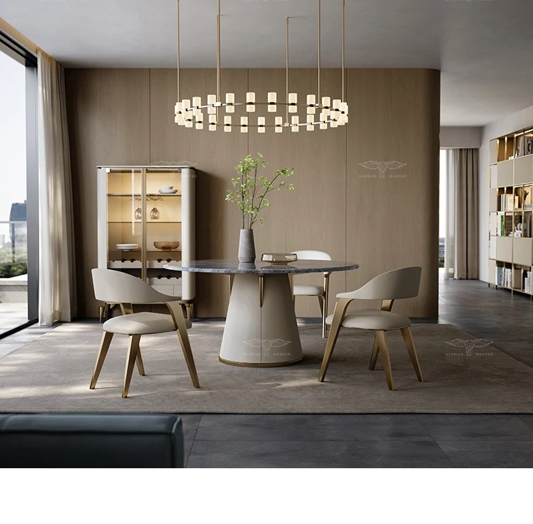 2023 New Round Marble Dining Table - Modern Luxury for Open Concept Villas and High-End Homes, Perfect for Stylish Dining Experiences