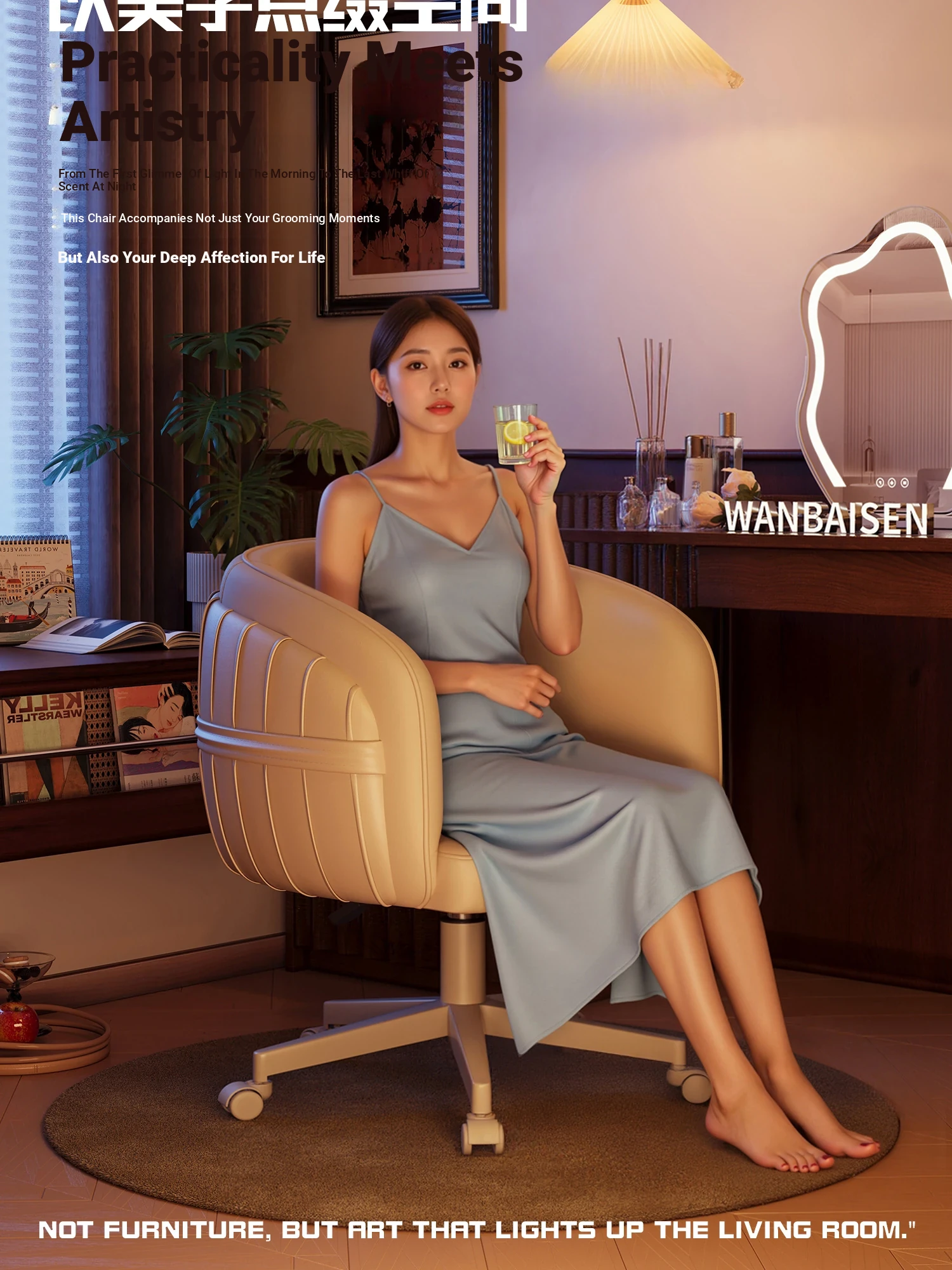 2025 New Creamy Designer Makeup Vanity Chair - Elegant and Chic Stool for Women's Bedrooms and Walk-in Closets, Perfect for a Stylish Touch