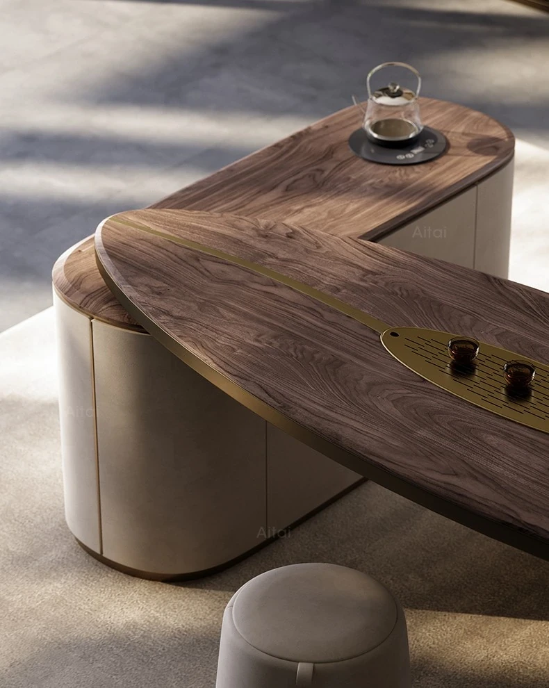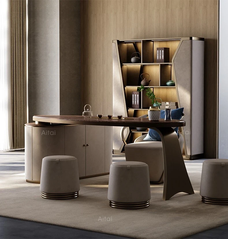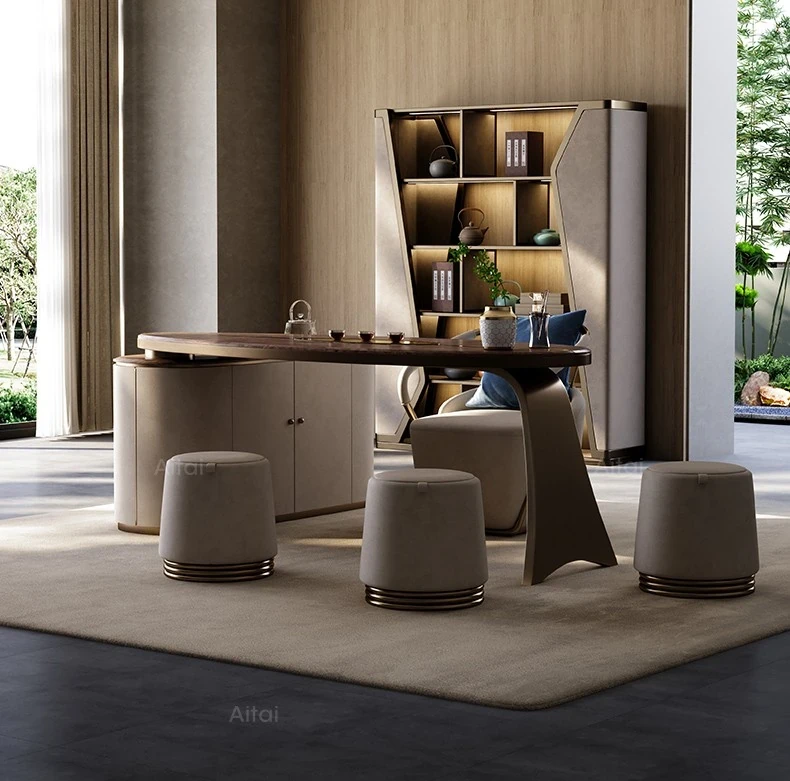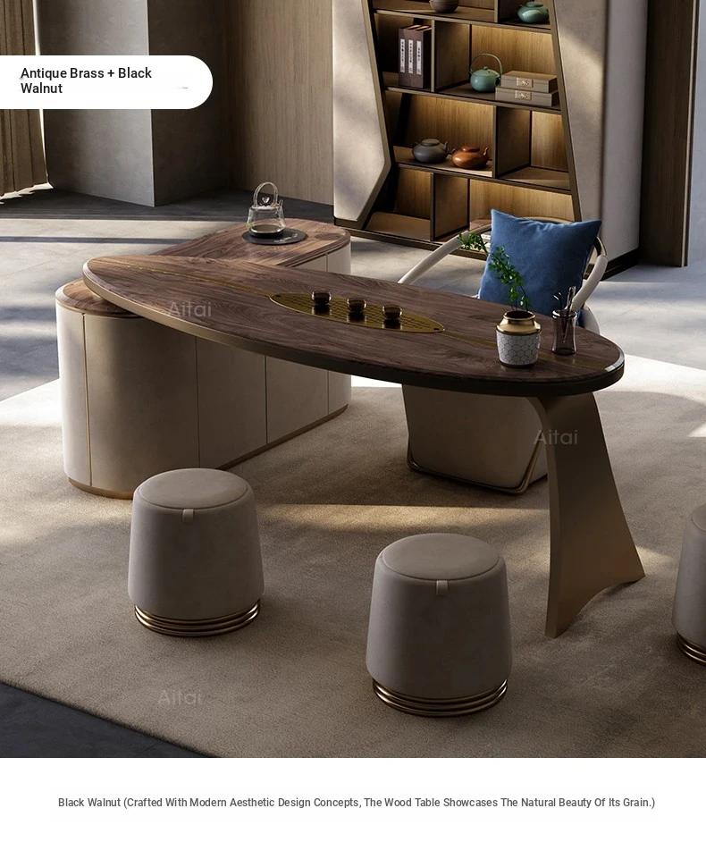 Designer 2023 New Luxury Minimalist Solid Wood Tea Table Set in Black Walnut - Perfect for Tea Ceremonies and Stylish Living Spaces