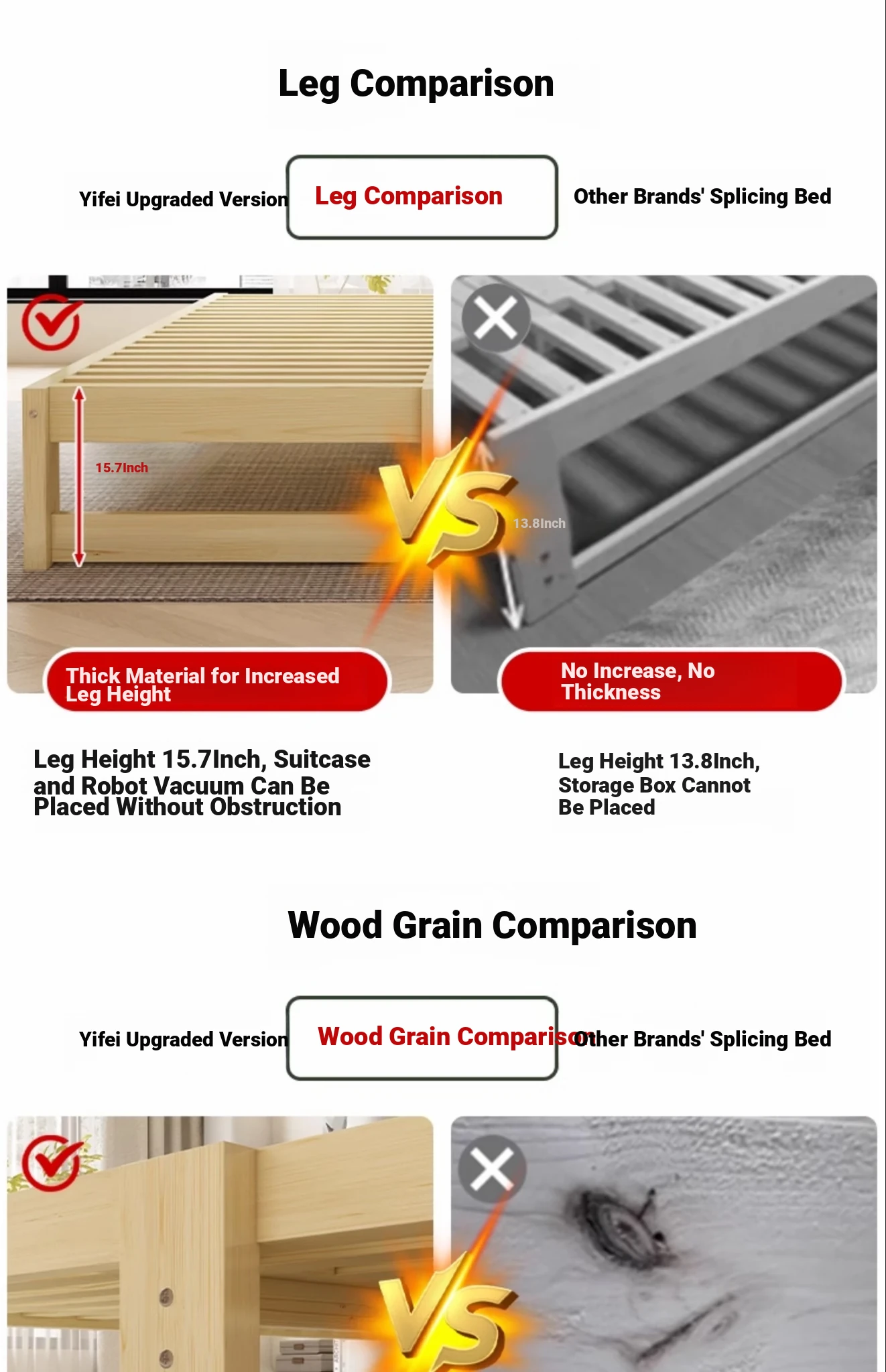 All solid wood length 200 * width (23.62in-39.37in)+ mattress Matching is more favorable