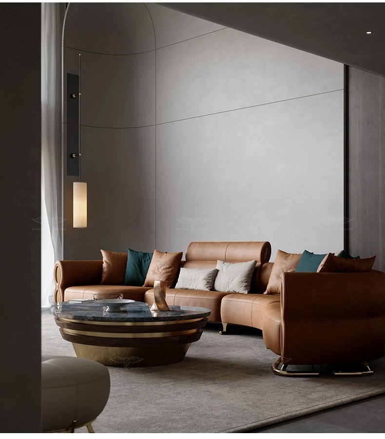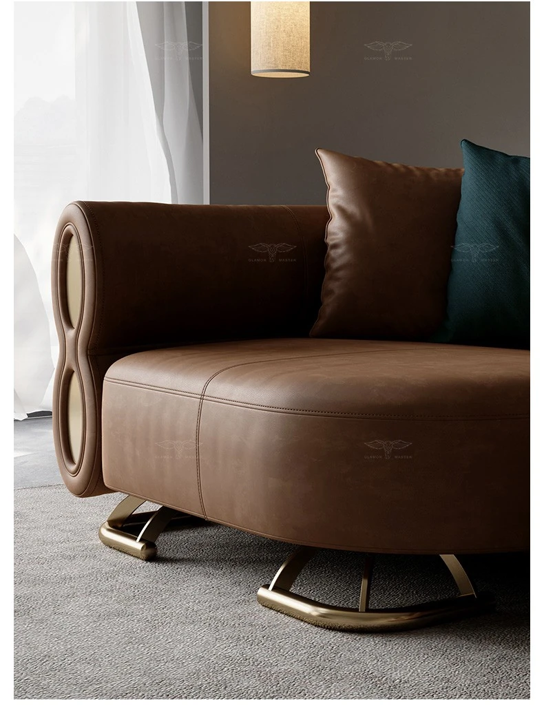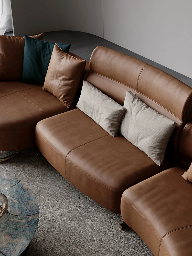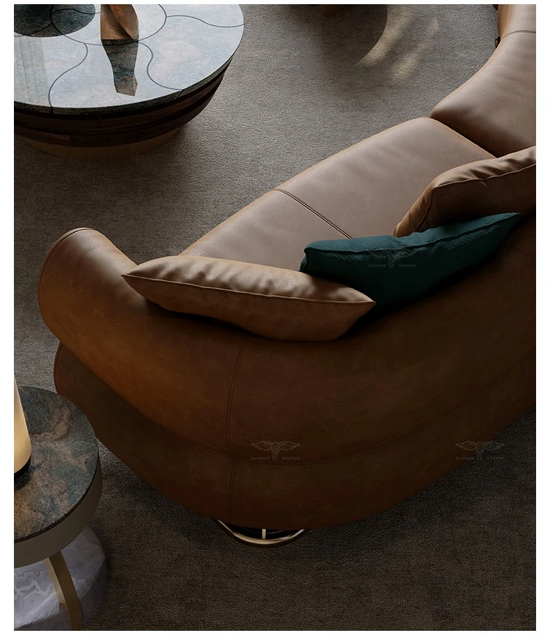 Modern Luxury Genuine Leather Sofa – Elegant Curved Sofa Set for Villa and Spacious Living Room, High-End Italian Design for Home Comfort