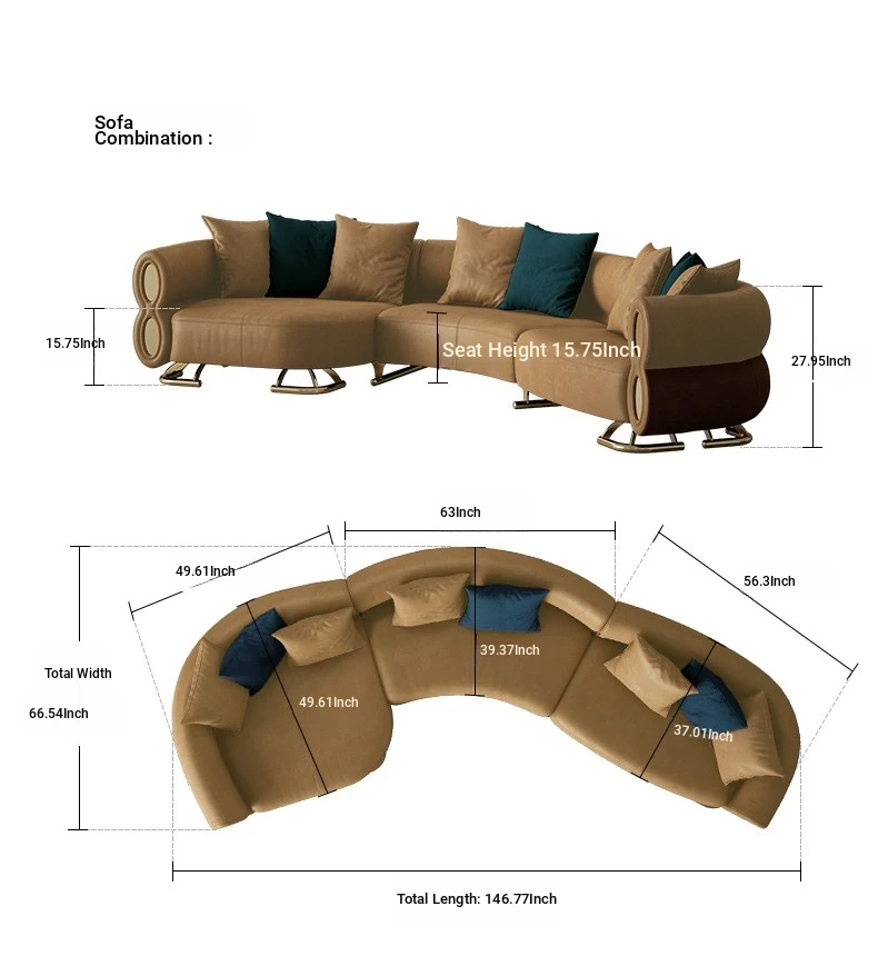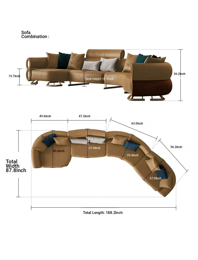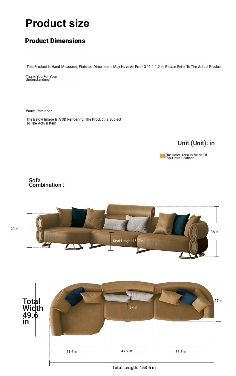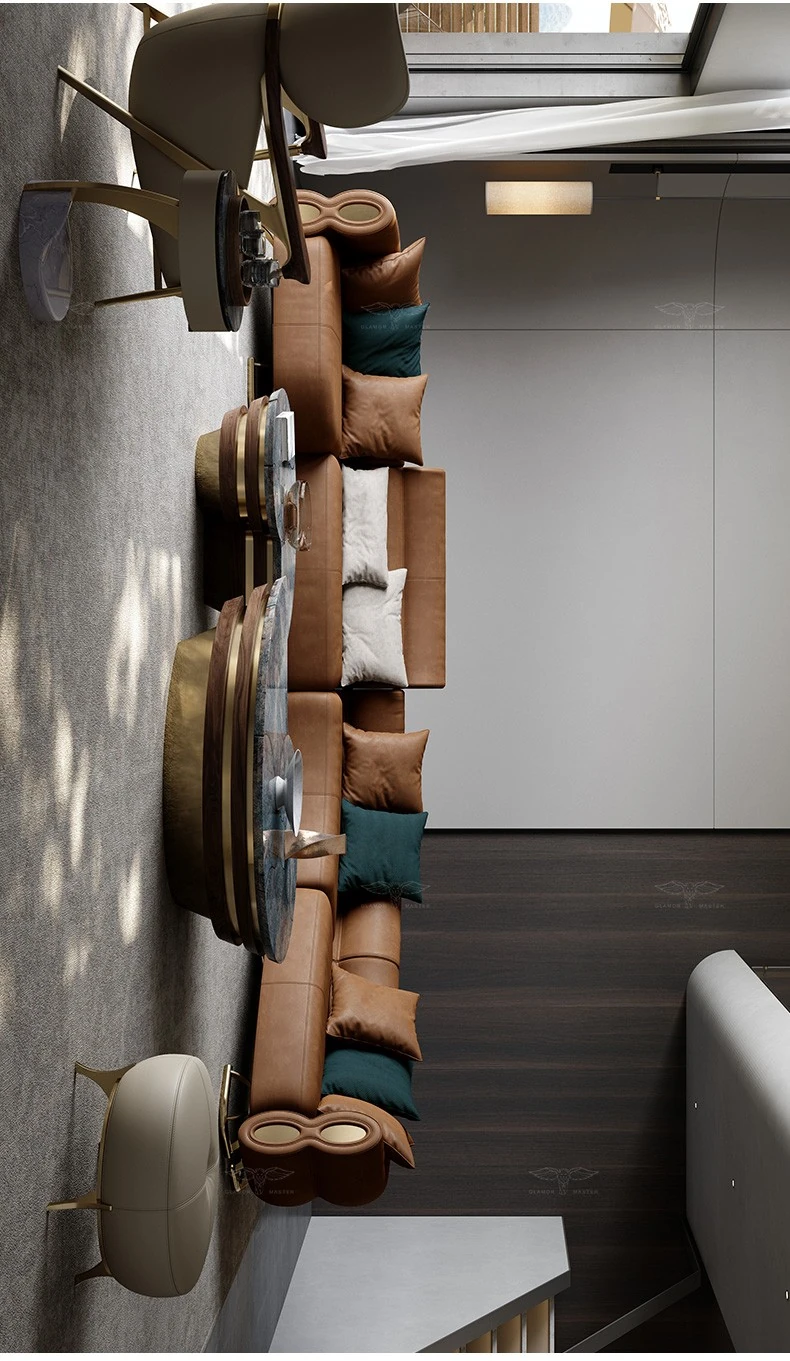 Modern Luxury Genuine Leather Sofa – Elegant Curved Sofa Set for Villa and Spacious Living Room, High-End Italian Design for Home Comfort