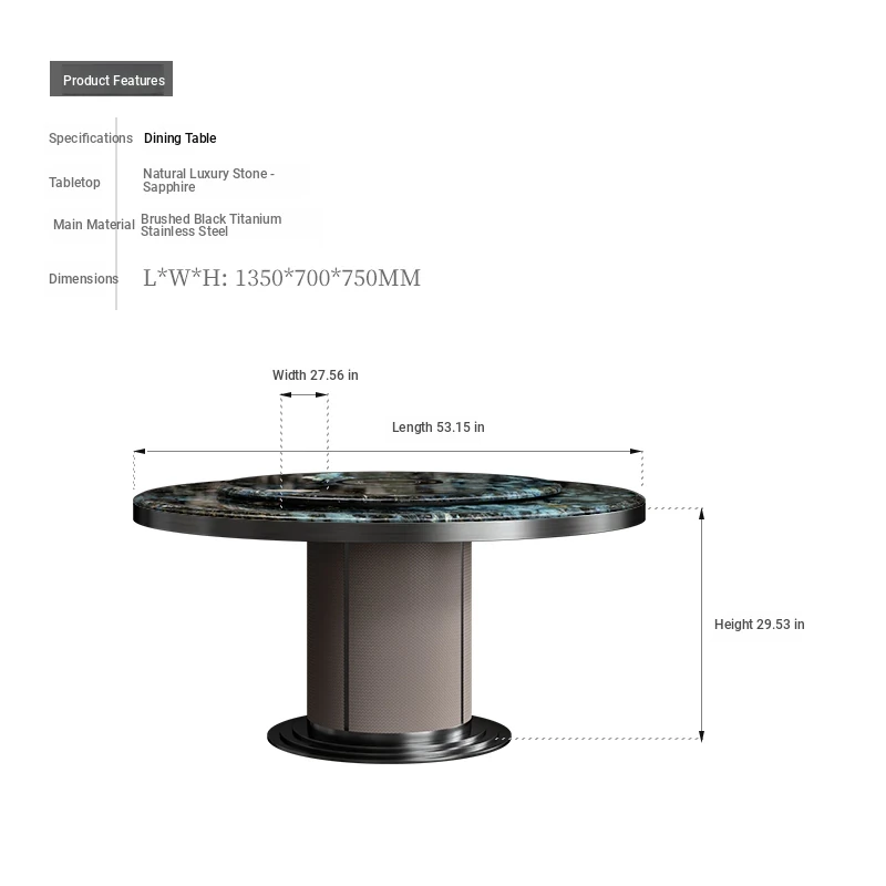 53.15in Sapphire Dining Table (Black Titanium)