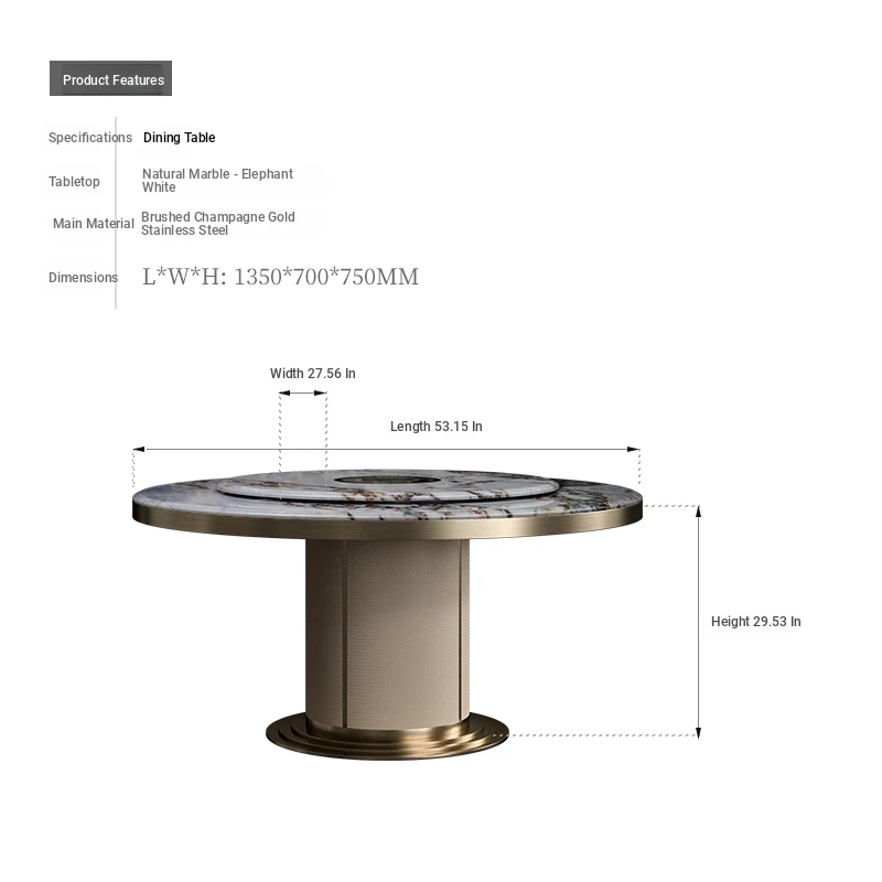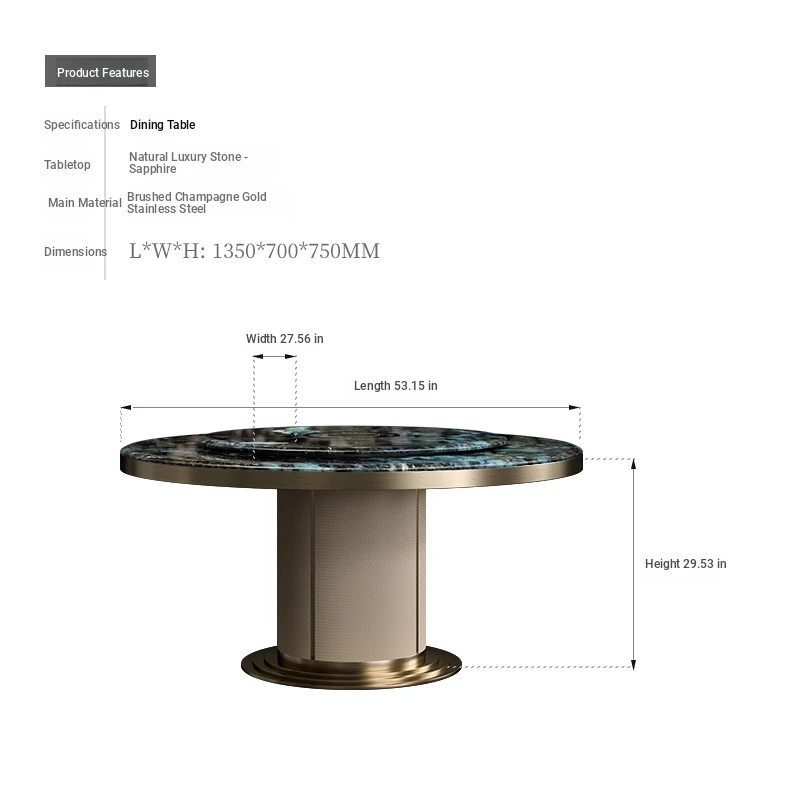 53.15in Sapphire Dining Table (Champagne Gold)