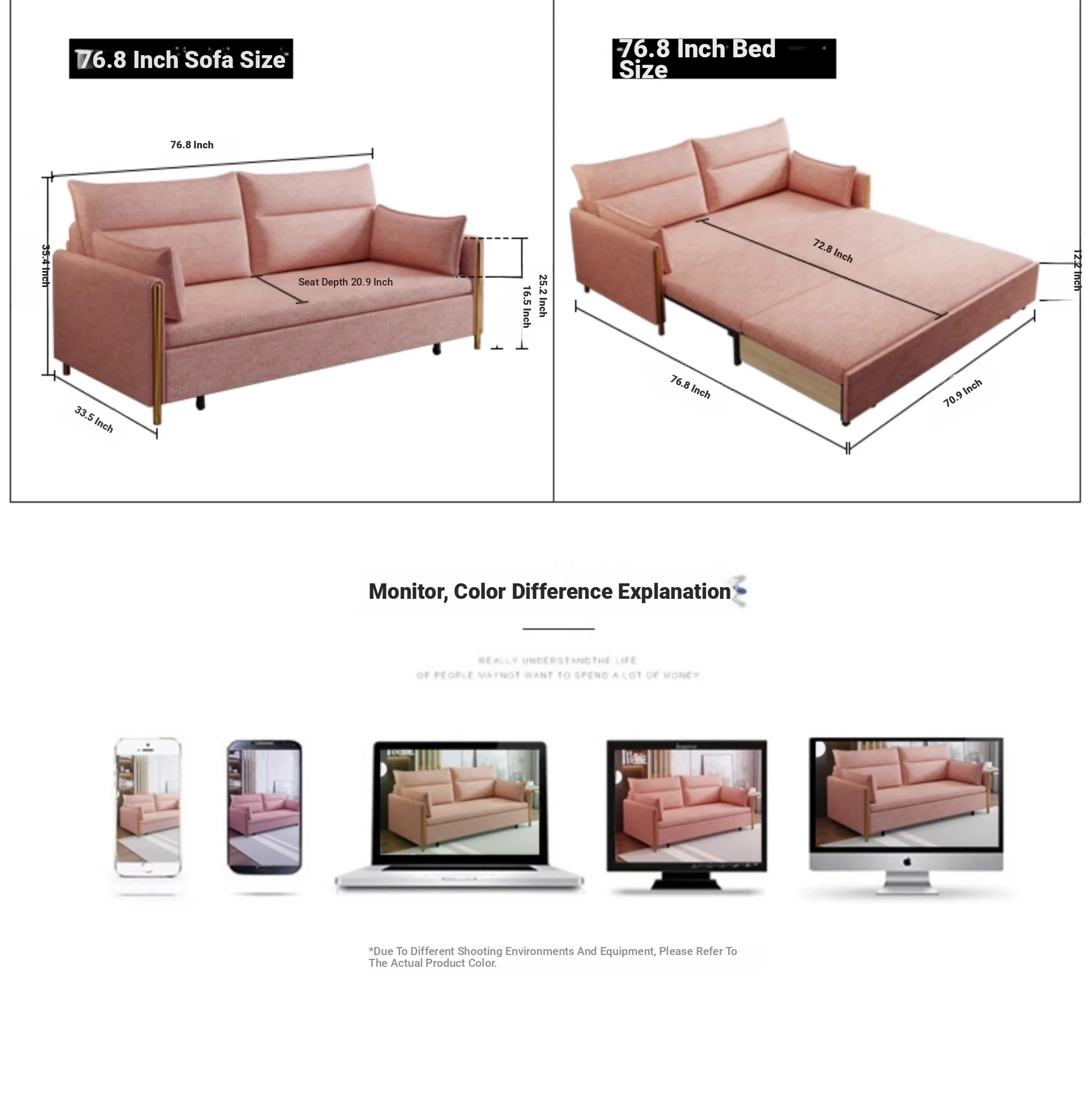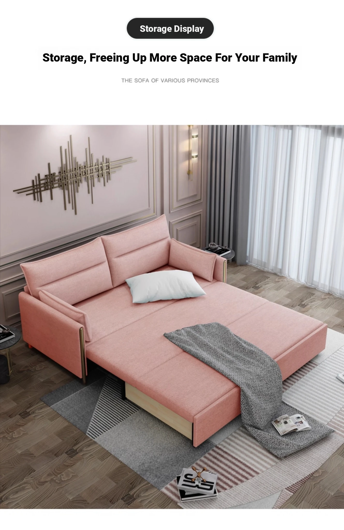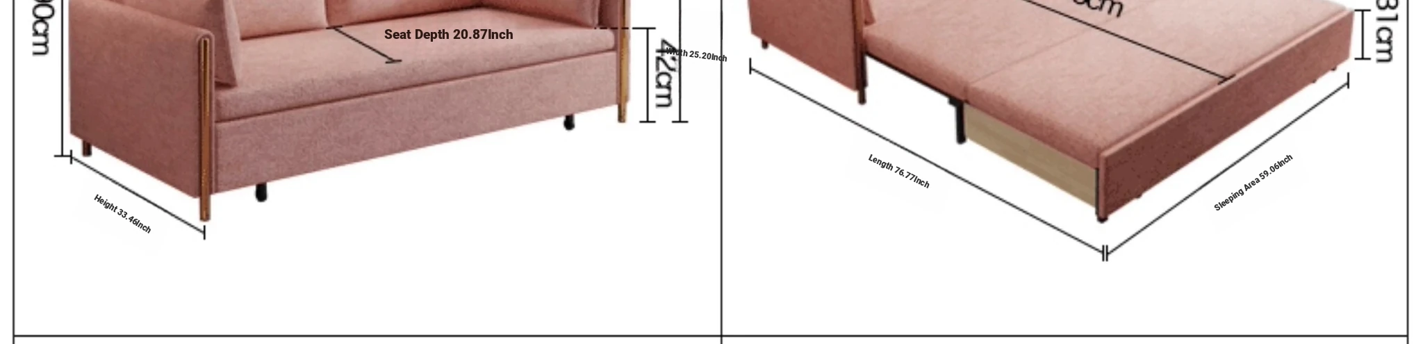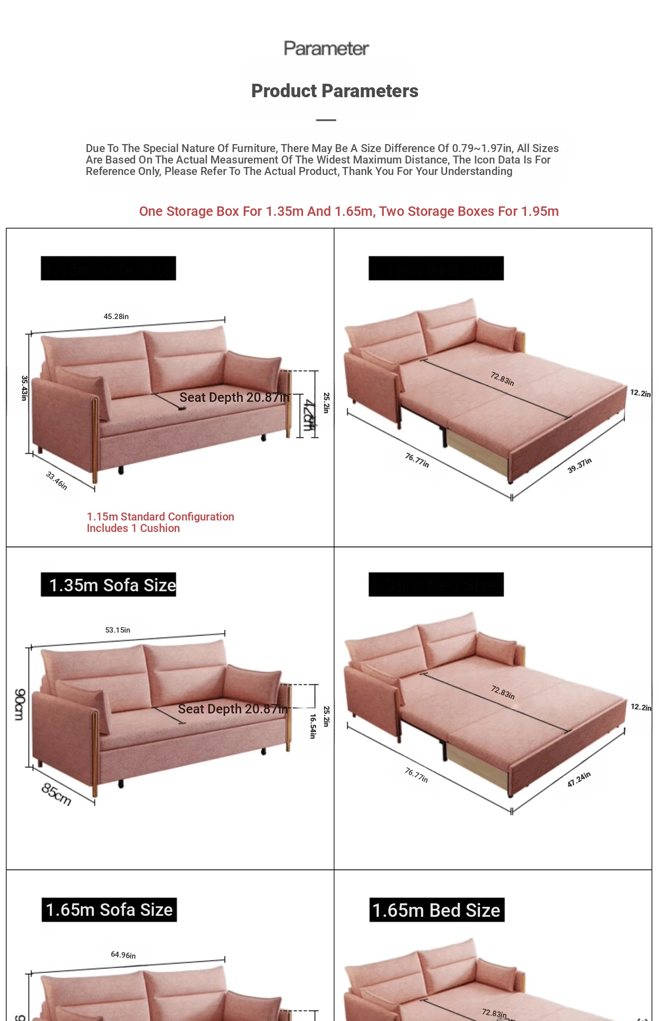 Customizable 83.86in/95.67in/107.48in [Double + storage Imperial Concubine] sofa bed