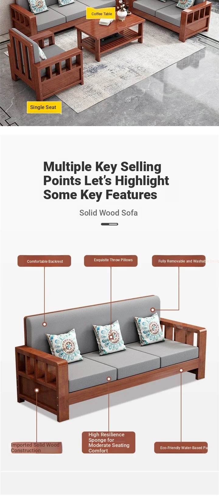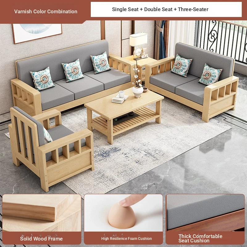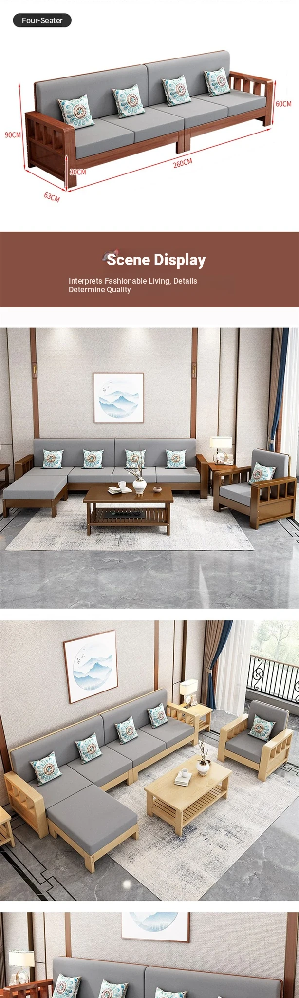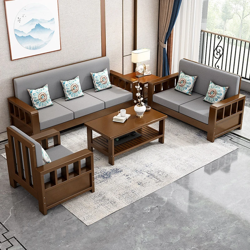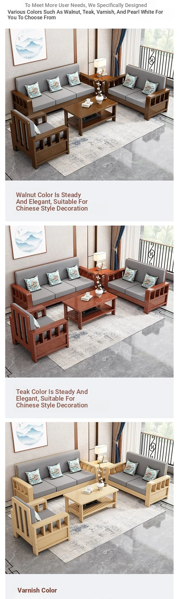 New Chinese Style Solid Wood Sofa Set for Small Apartments - Versatile All-Season Economical Full Solid Wood Sofa for Your Living Room