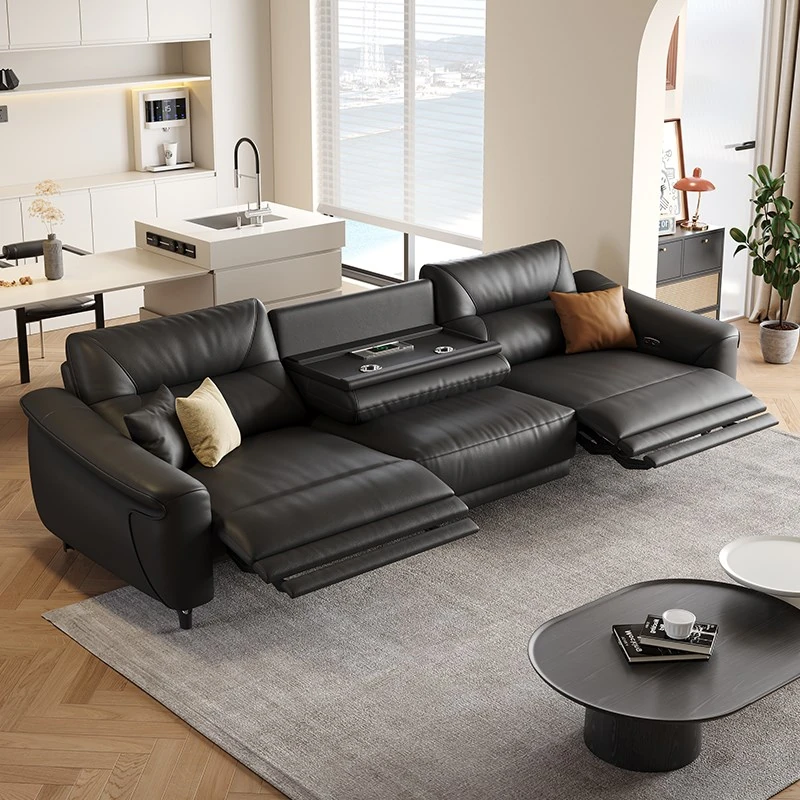 Luxury Multi-Functional Electric Reclining Home Theater Sofa - Three-Seat Leather Sofa for Living Room, Perfect for Family Movie Nights!