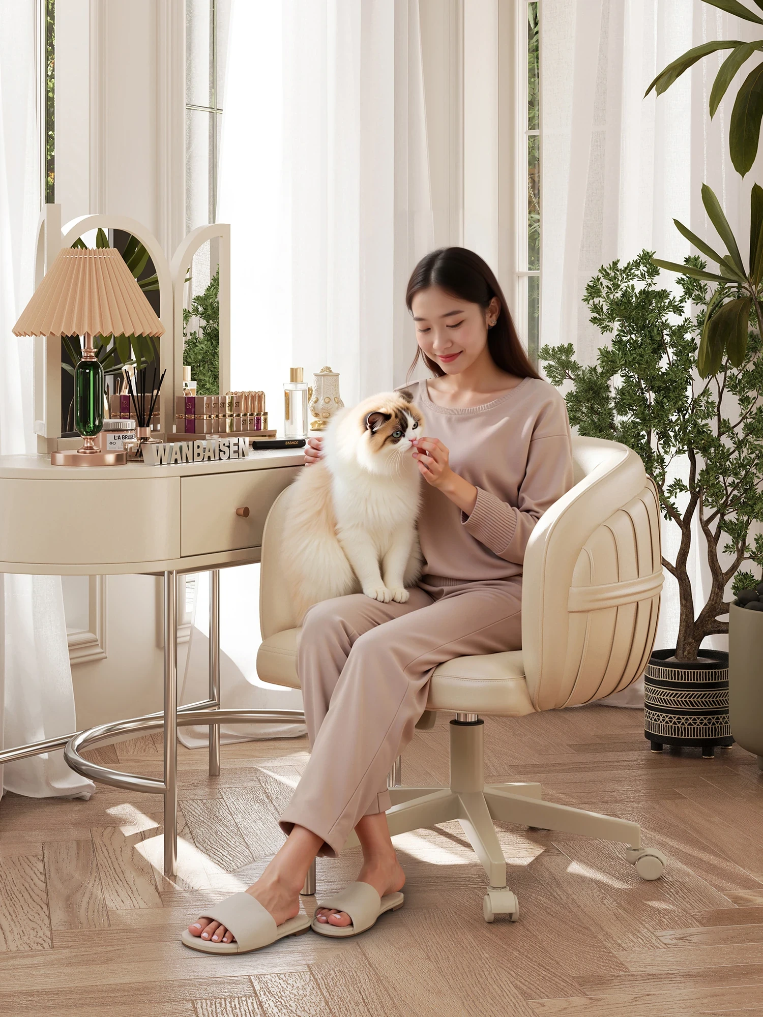 2025年新作!クリーム風デザインのドレッシングテーブルチェア✨ 高級感漂う女性用メイクアップチェア。寝室やクローゼットにぴったりな、おしゃれで快適な椅子です!