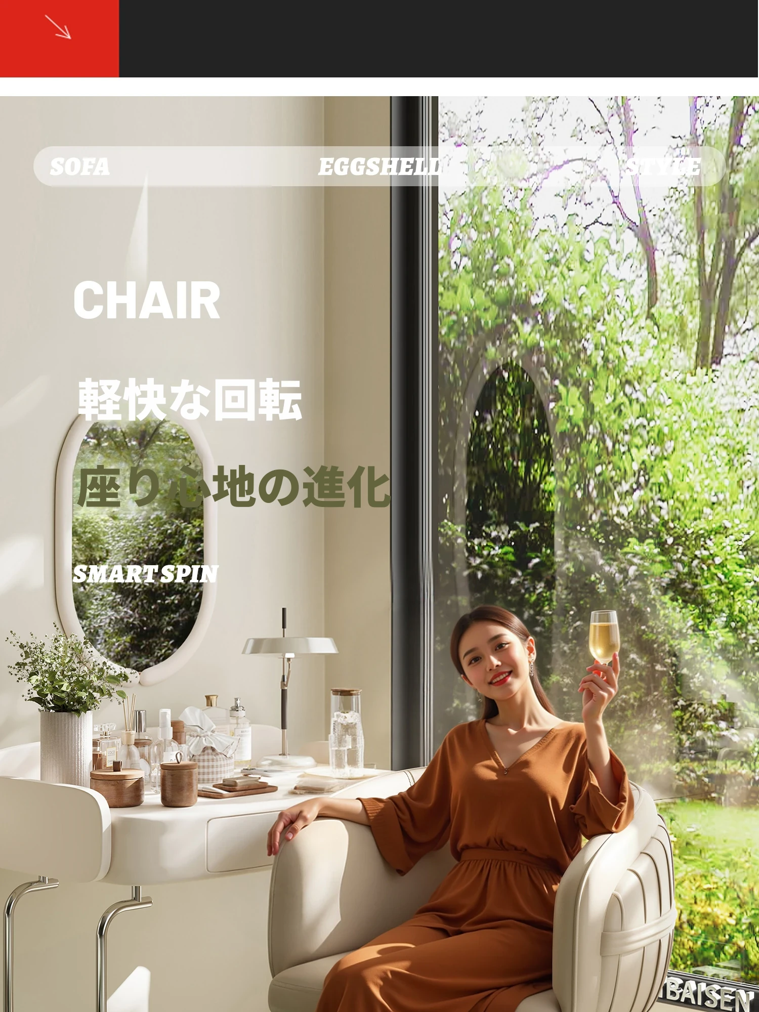 ベージュとオレンジ【360°回転★昇降】付きリクライニング