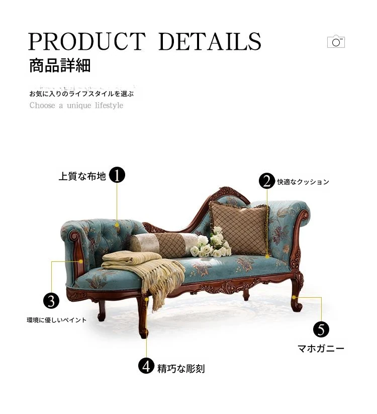 アメリカンスタイルの無垢材製カウチソファ|布製バルコニー用リラックスチェア|エレガントなベッドルーム用ビューティーベンチ|ヨーロピアンデザインの個別スリーピングチェア