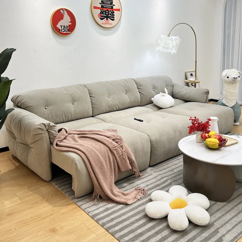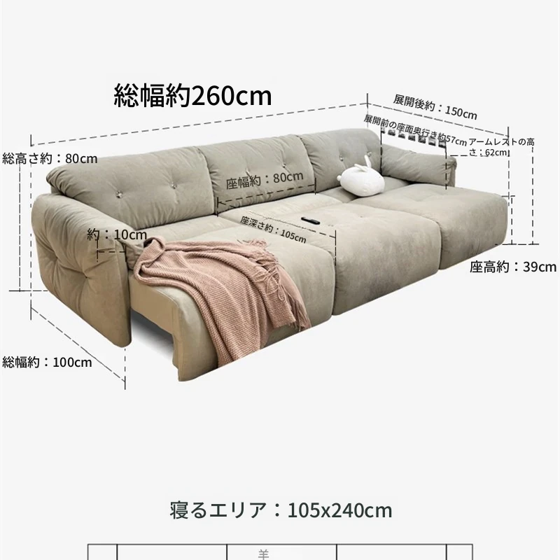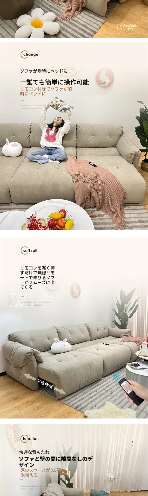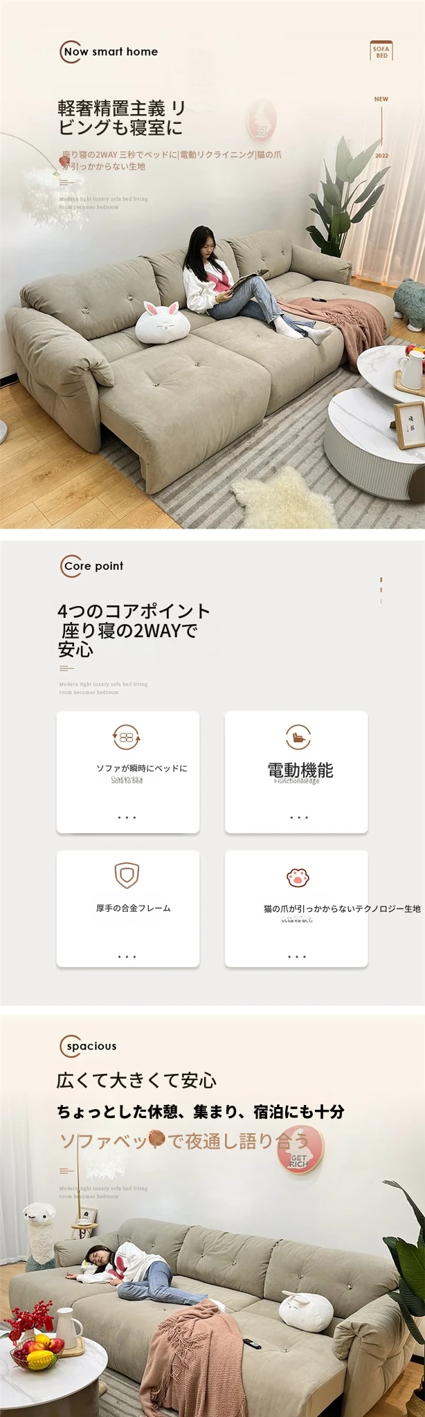 人気の電動伸縮ソファ!リビングに最適、佛山の家具メーカー直販!猫の爪にも強い布製、雲のような快適さを持つ機能的ソファベッドで、心地よいリラックスタイムを実現!