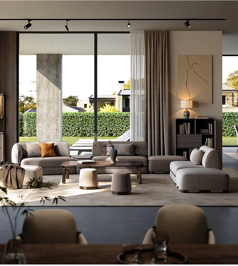 ブダペストソファー イタリアンミニマルデザイン 高級L字型 ラグジュアリー本革トーフブロックソファー。洗練されたスタイルと快適さを兼ね備えた、極上のリビング空間を演出します!