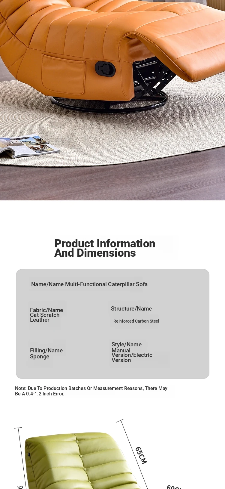 Caterpillar Lazy Sofa - Electric Multifunctional Single Recliner for Living Room and Balcony, Modern Minimalist Lounge Chair for Ultimate Relaxation