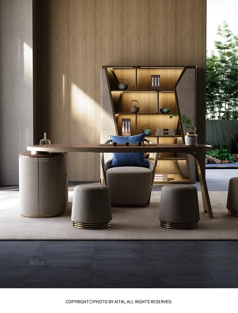 デザイナー202新作!本格派ブラックウォールナット製の無垢材ティーテーブル。シンプルで洗練された軽奢スタイル、心安らぐ茶室にぴったりの茶卓と椅子。あなたのリビングを特別な空間に変えます!