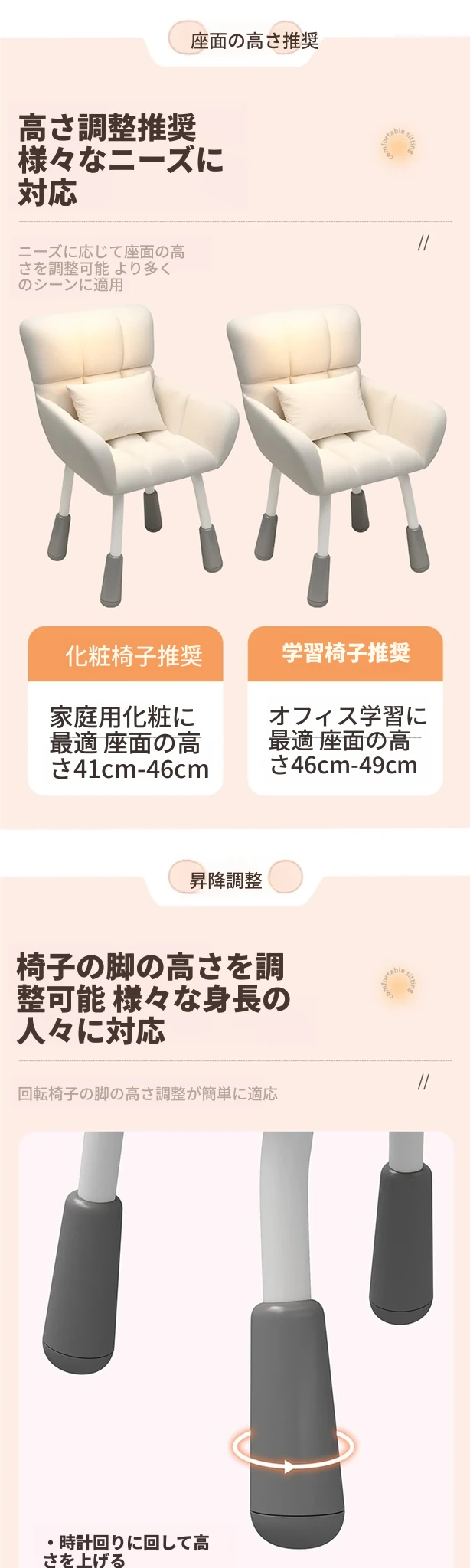軽やかで高級感漂うメイクアップチェア|ネイルチェアとしても最適!モダンでシンプルなデザイン、小さな部屋にもぴったりのドレッシングテーブル用椅子。あなたの美しさを引き立てるアイテムです!