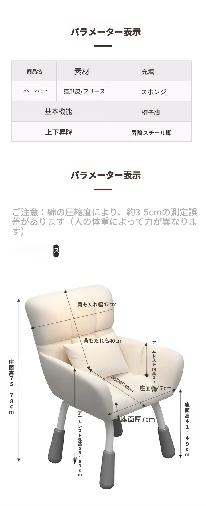 米白色【厚手⭐幅広⭐耐摩耗性の猫爪レザー】8CM昇降脚-抱き枕付き