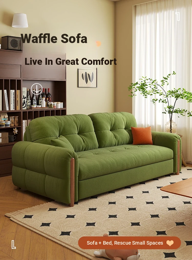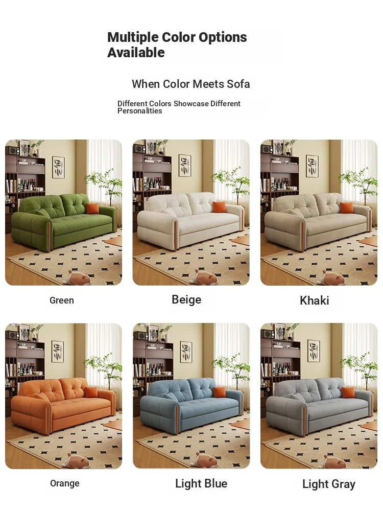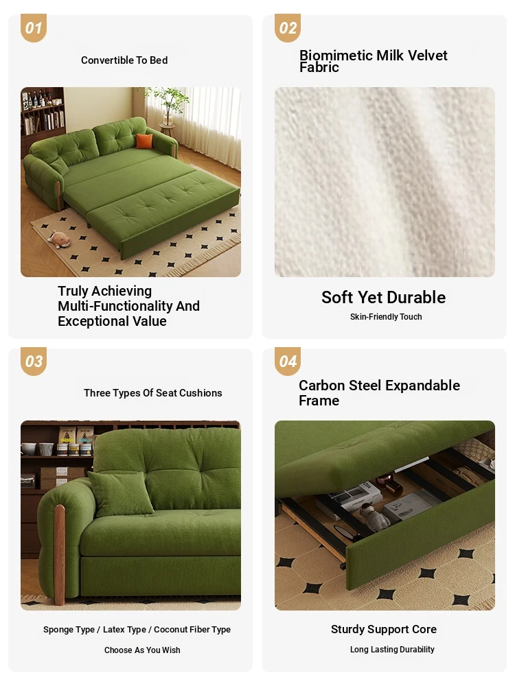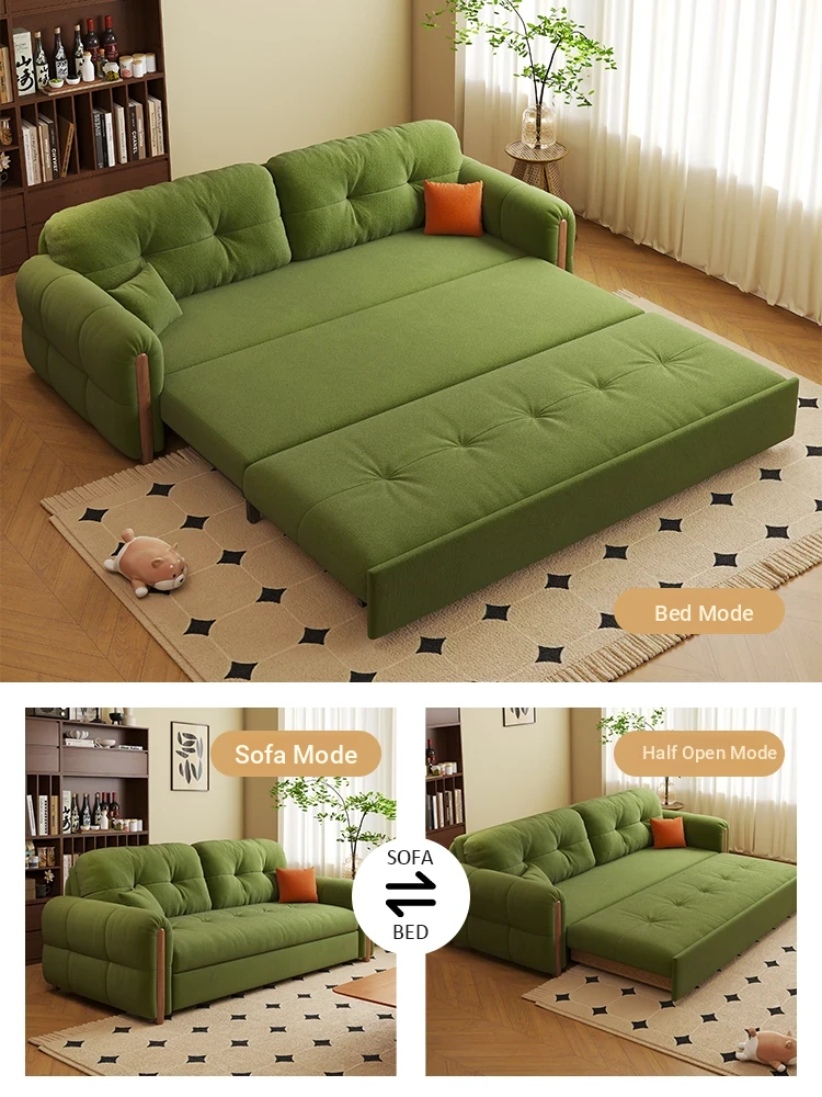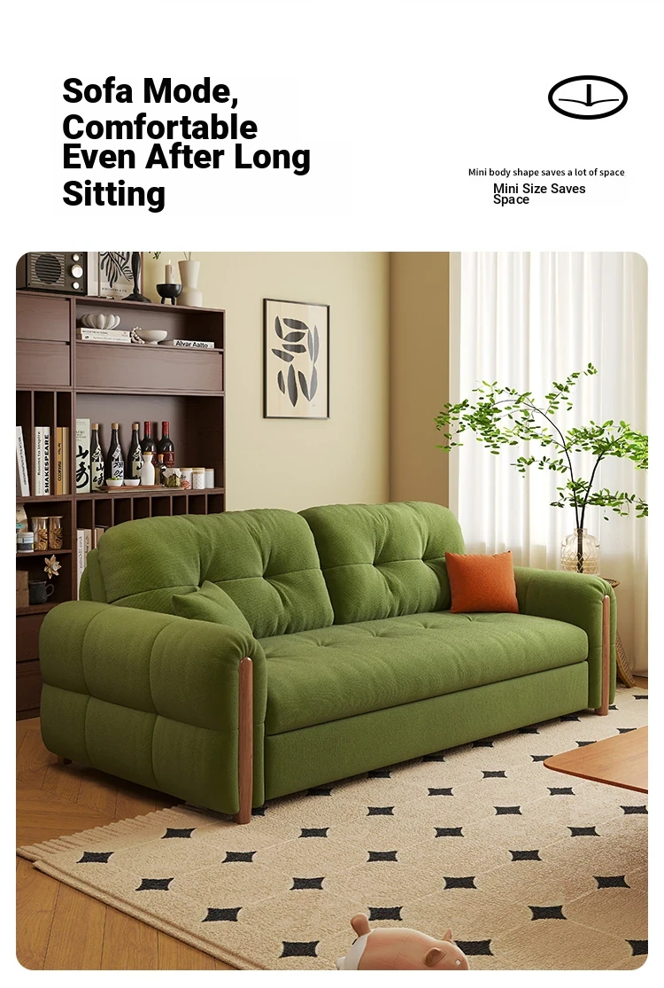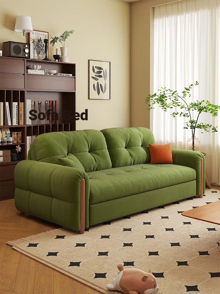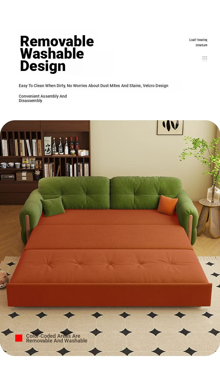 フランス風ヴィンテージクリーム色の無垢材ソファベッド!折りたたみ式で小型スペースにもぴったり。2025年新作、家庭用リビングに最適なデザインで、スタイリッシュさと機能性を両立!