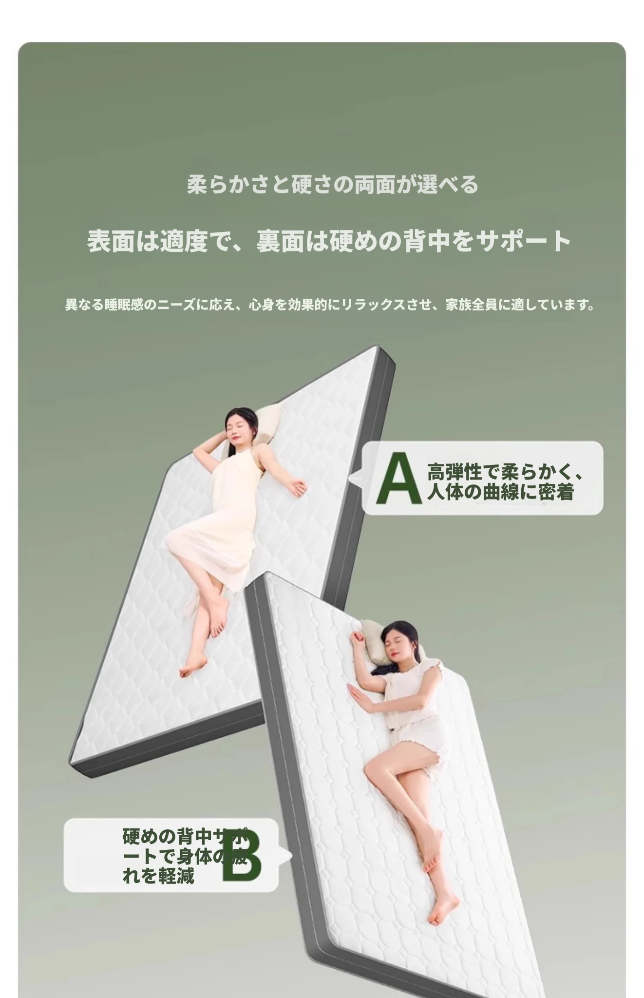 【185cm-オリーブグリーン】アップグレードラテックスマットレス/ダウン充填