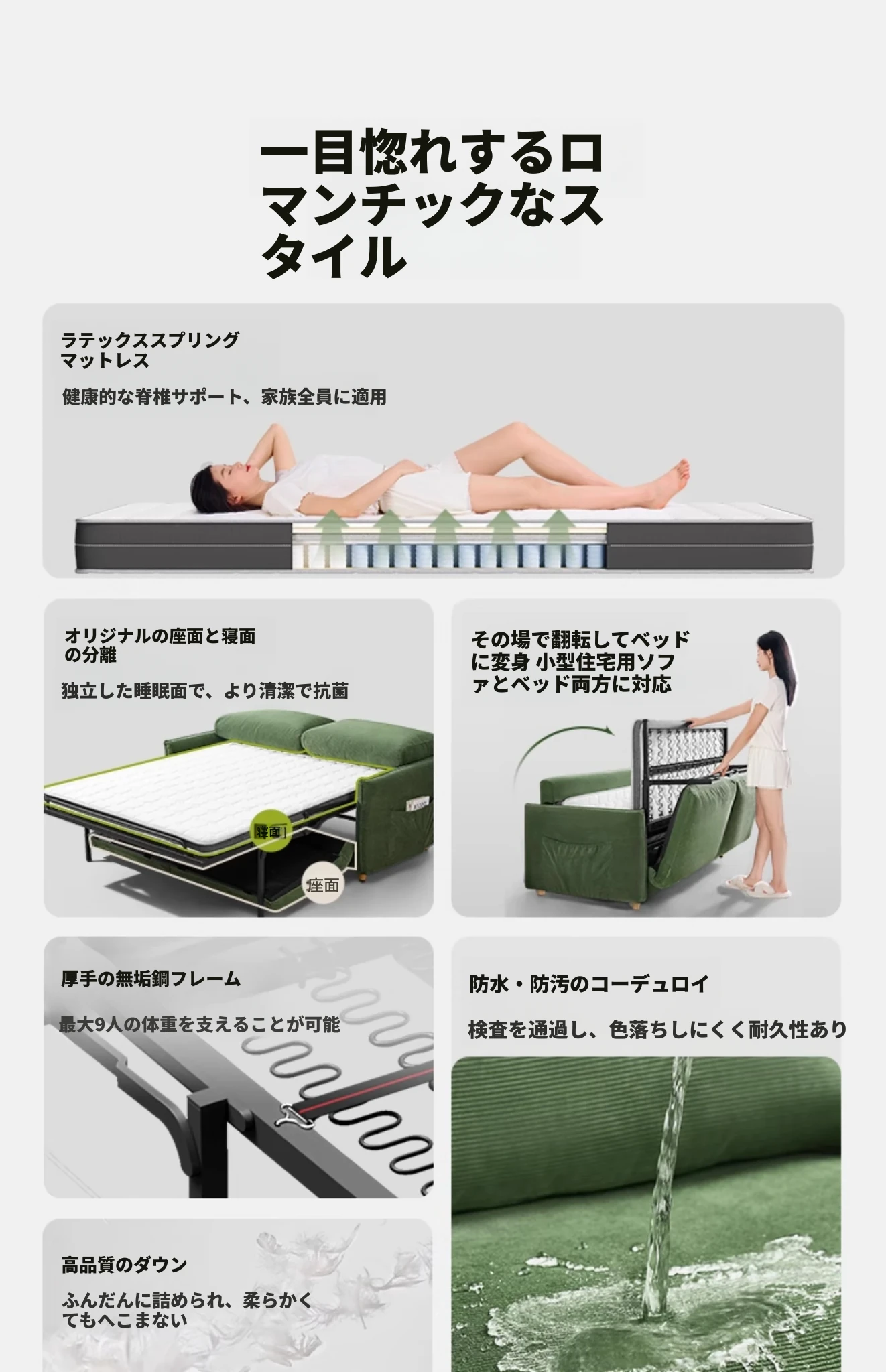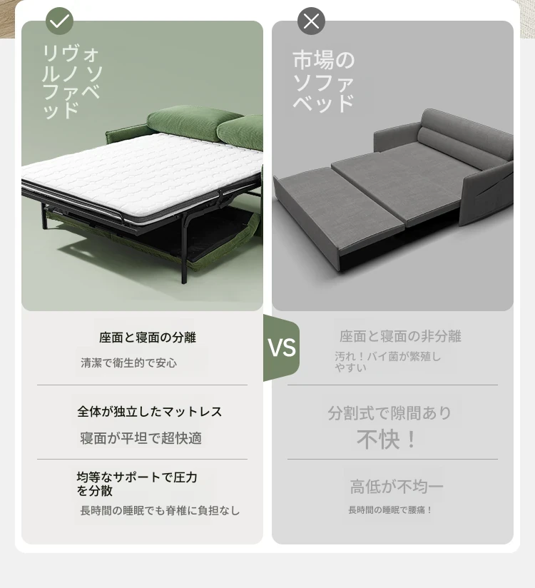 リヴォルノ高級ソファベッド 折りたたみ式マルチ機能 体に優しいマットレス付き!リビングにぴったりな小型デザイン、シングル&ダブル対応の新作!快適な眠りとスタイリッシュな空間を実現!