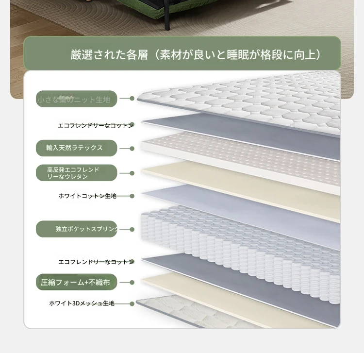 【145cm-オリーブグリーン】アップグレードラテックスマットレス/ダウン充填