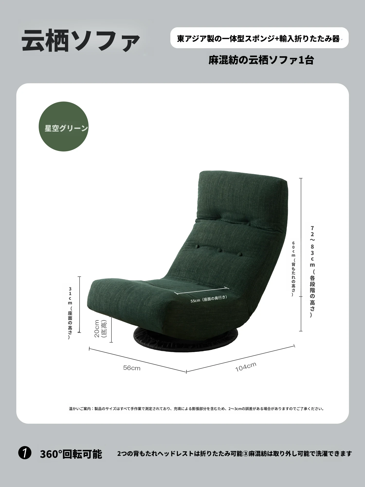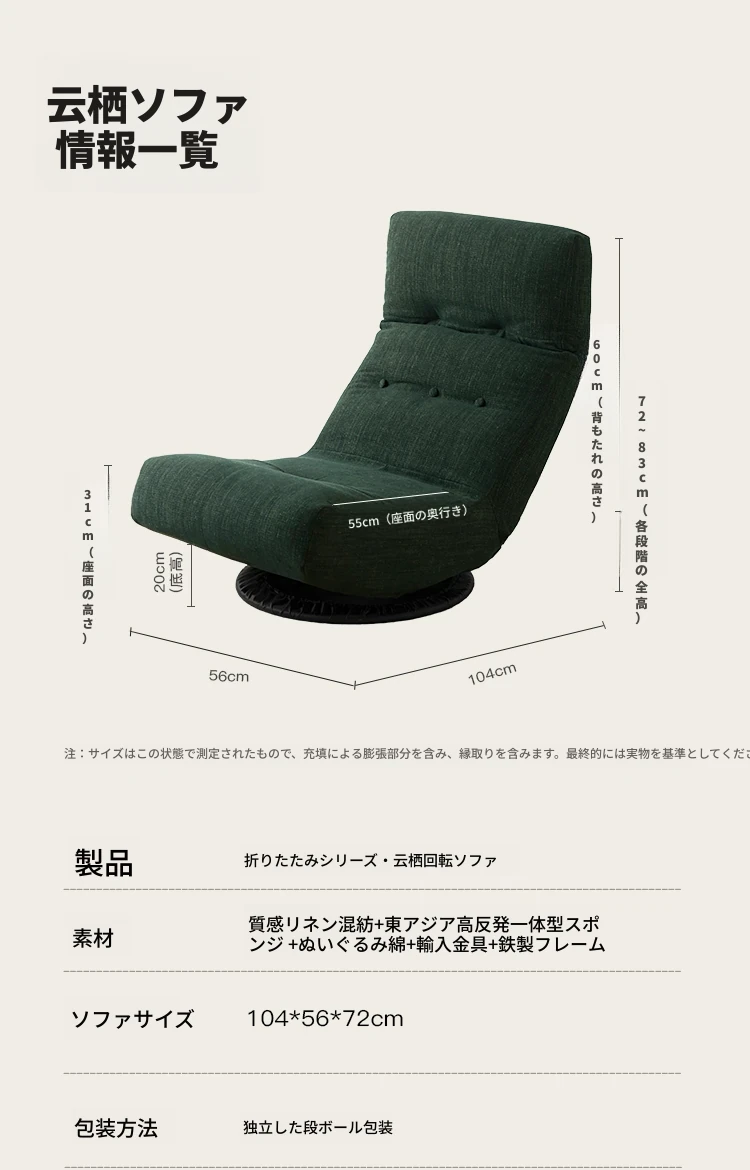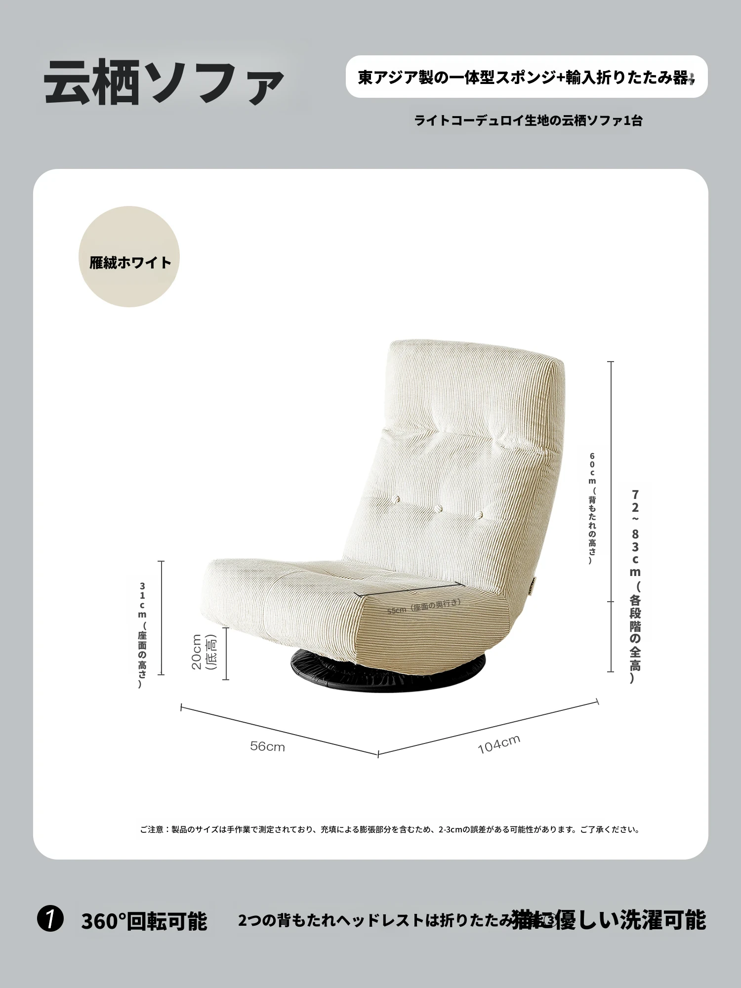 MRLAZY Lazy Sofa - Foldable, Washable Tatami Chair for Small Spaces - Japanese Style Rotating Single Sofa for Ultimate Relaxation