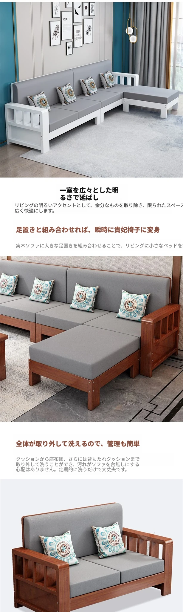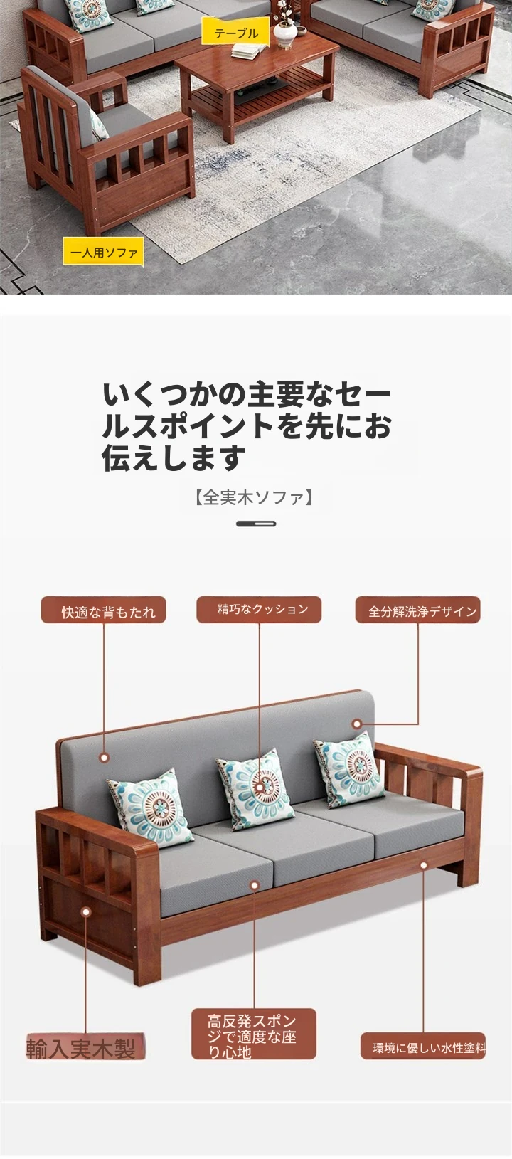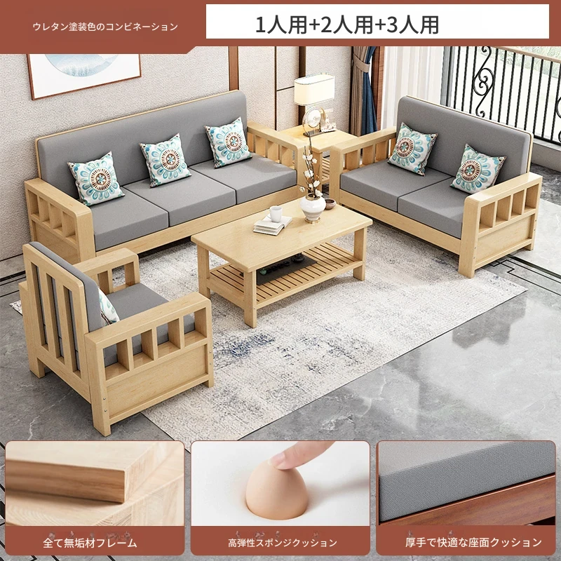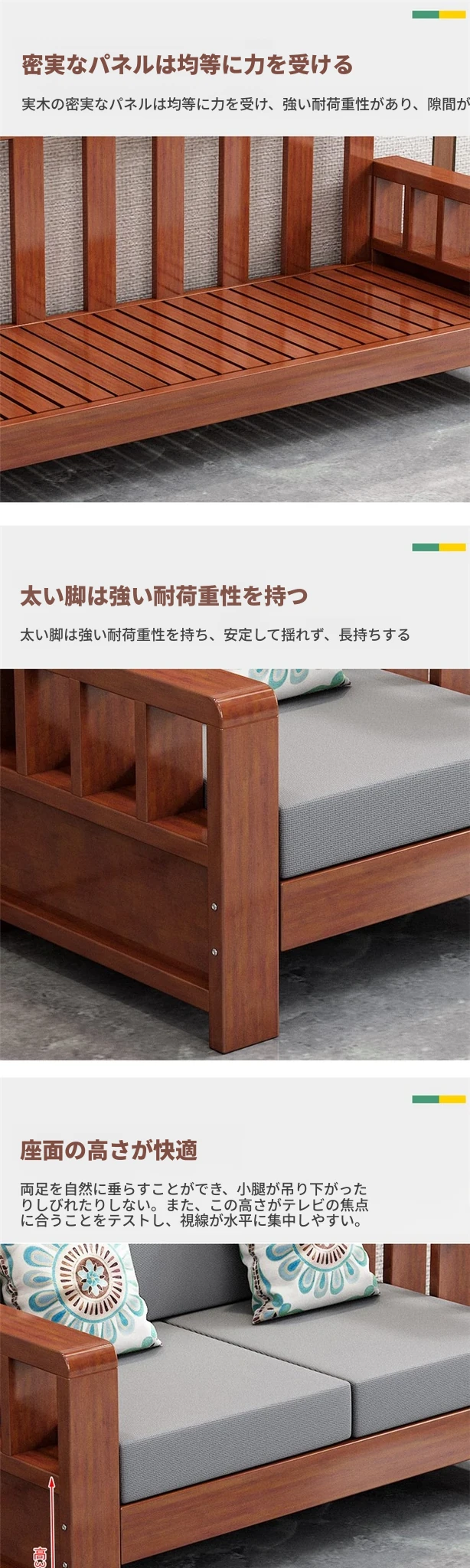 新中式デザインの全木製ソファセット - 小型住宅にぴったり!冬も夏も快適に使用できる経済的な選択。リビングルームをスタイリッシュに演出する、耐久性と快適さを兼ね備えた一品です。