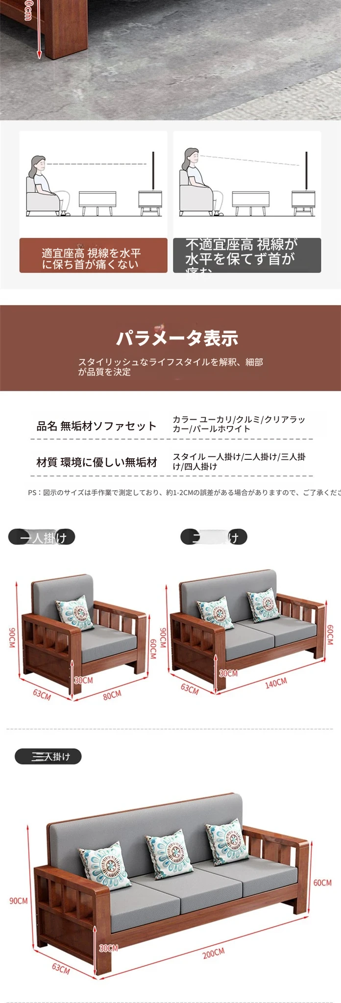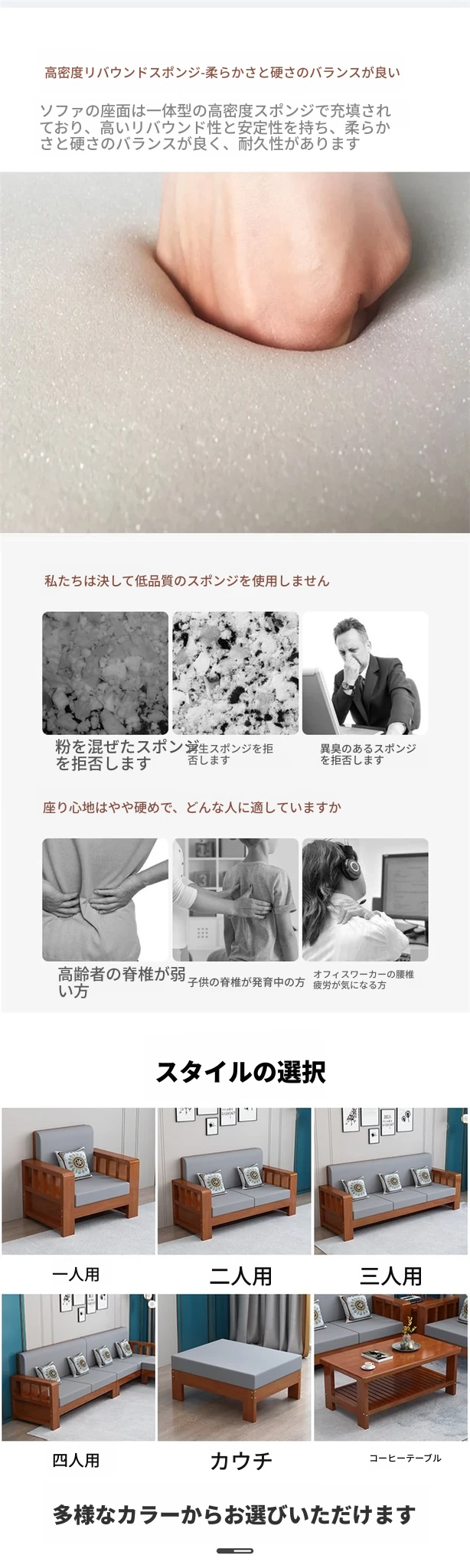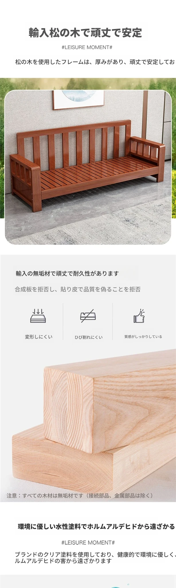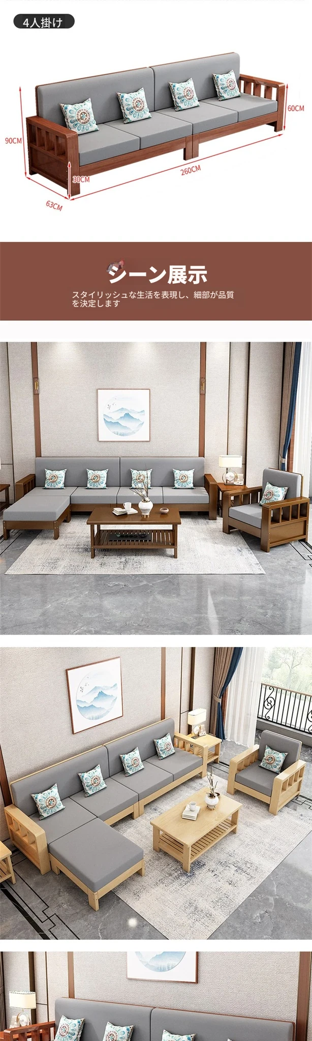 新中式デザインの全木製ソファセット - 小型住宅にぴったり!冬も夏も快適に使用できる経済的な選択。リビングルームをスタイリッシュに演出する、耐久性と快適さを兼ね備えた一品です。