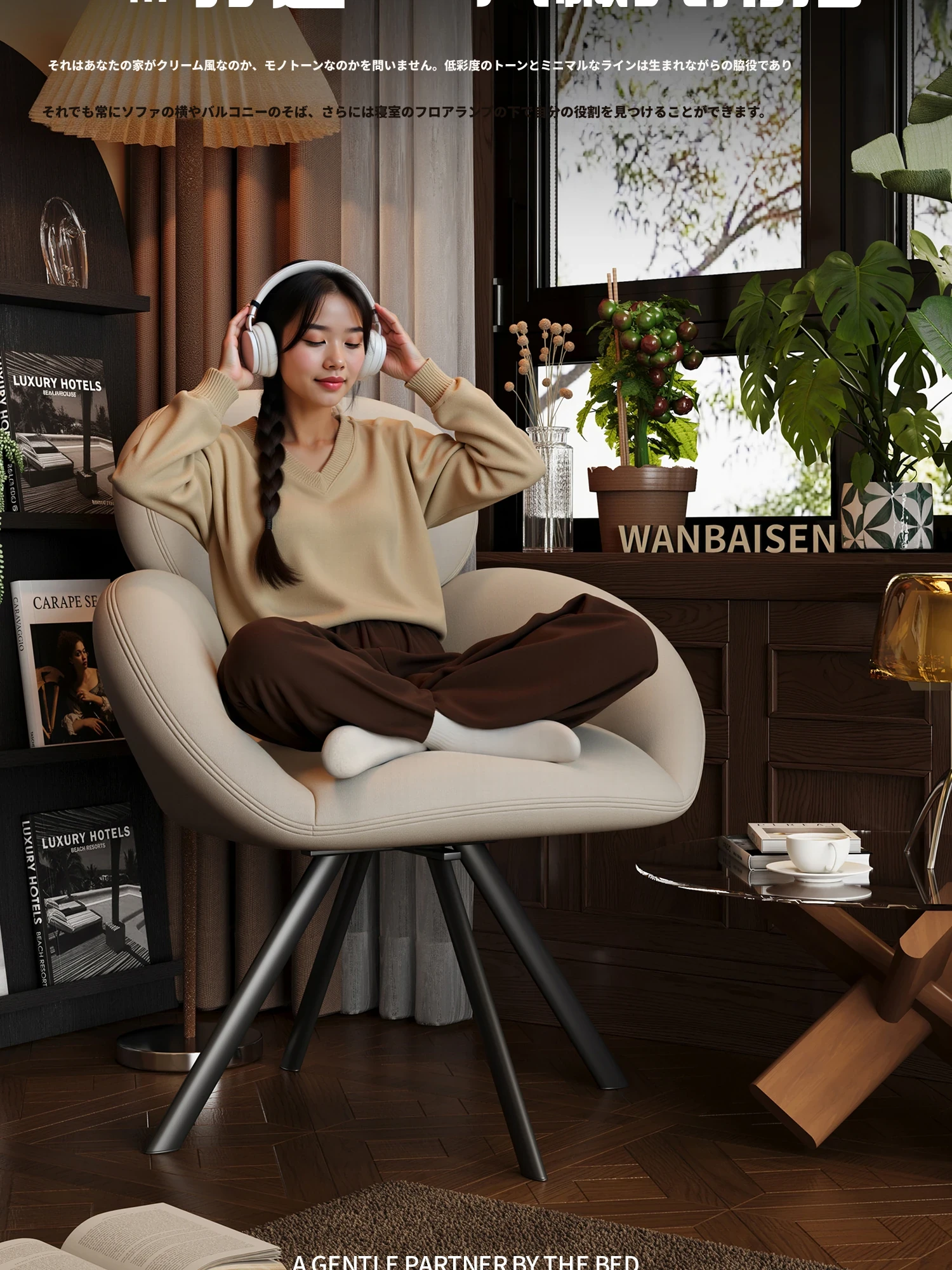 北欧風デザインの一人用回転ソファチェア!リビングやバルコニーにぴったりのリラックスチェア。小さなスペースにも最適なデザイナーズアイテムで、くつろぎの時間を演出します。