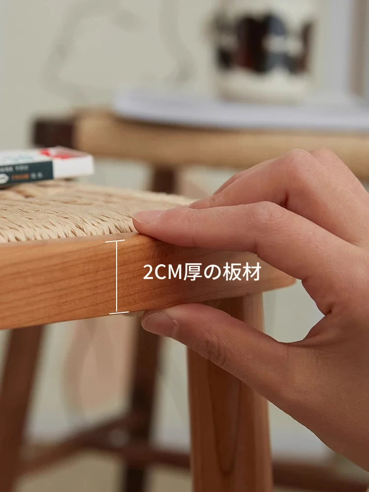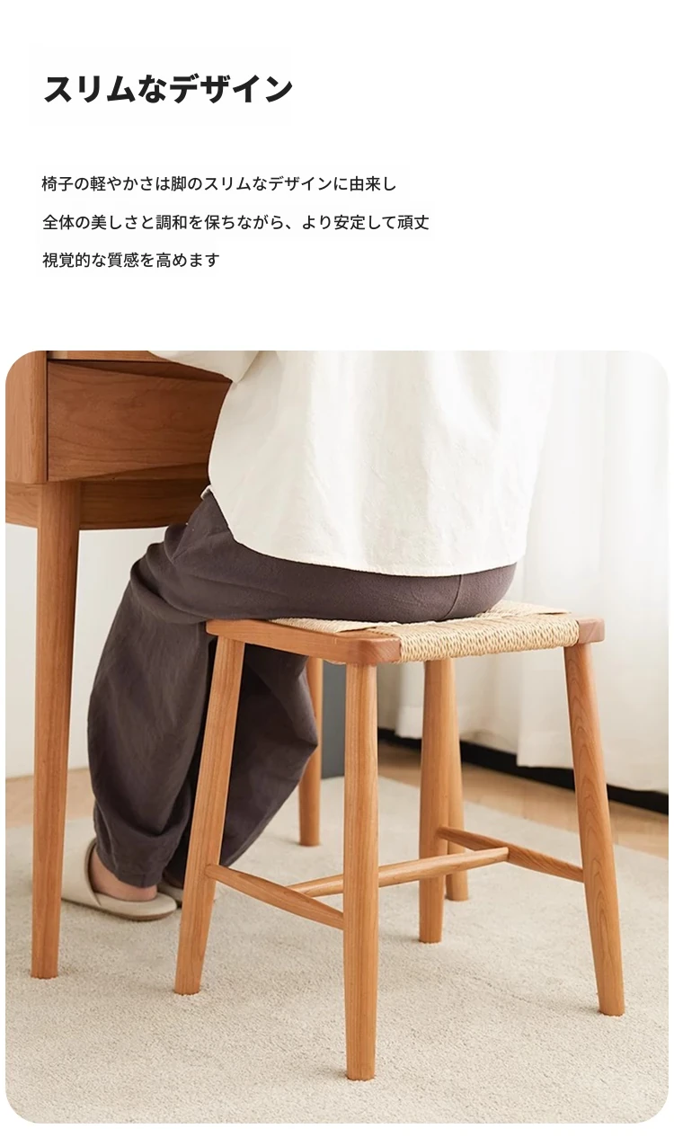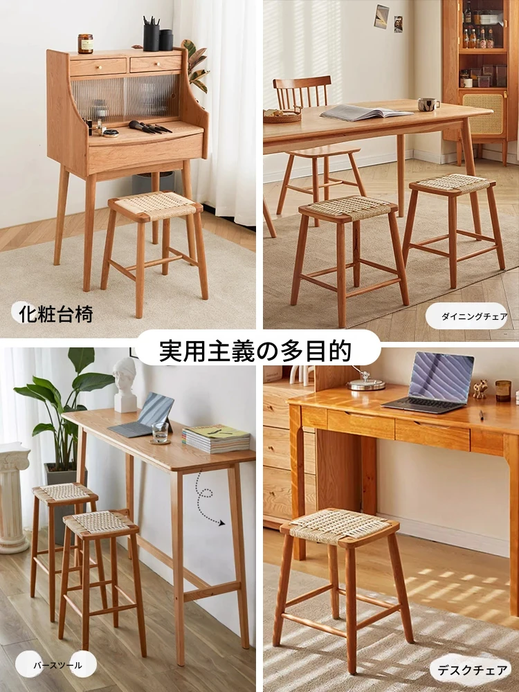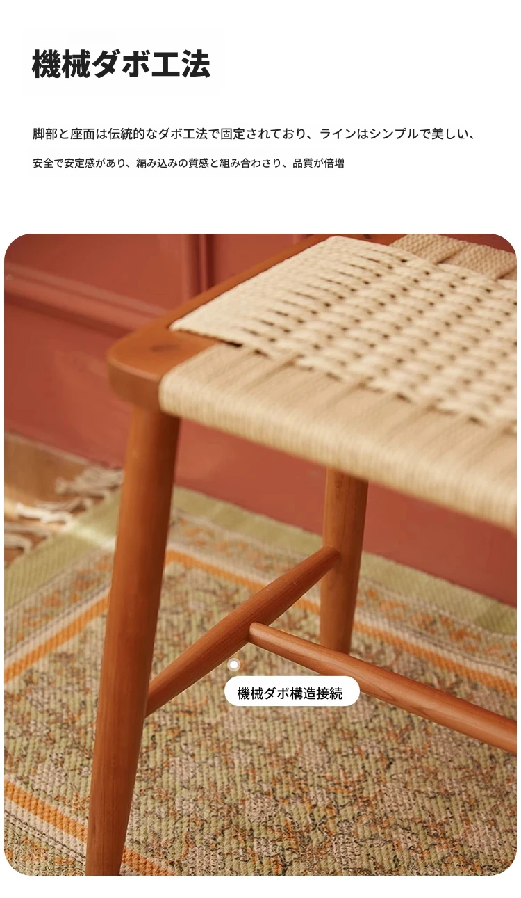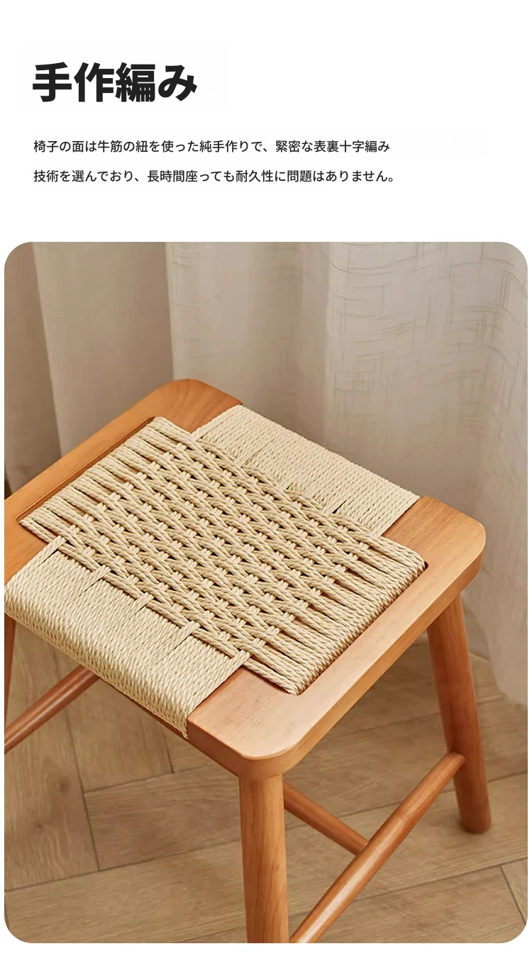 北欧風チェリーウッドのロープ編みミニスツール - シンプルでスタイリッシュな和風ドレッシングチェア、籐編みの靴替えスツールやメイクアップスツールとしても最適!